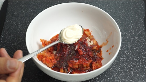 2. 김치를 그릇에 붓고 양념을 전부 넣고 골고루 섞어주세요.