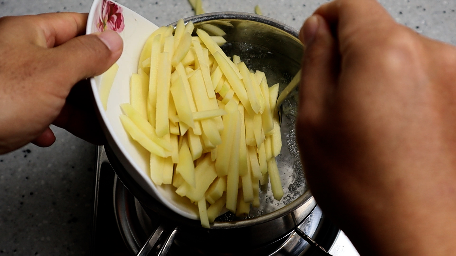 15. 냄비에 물기 뺀 감자를 부어주세요.