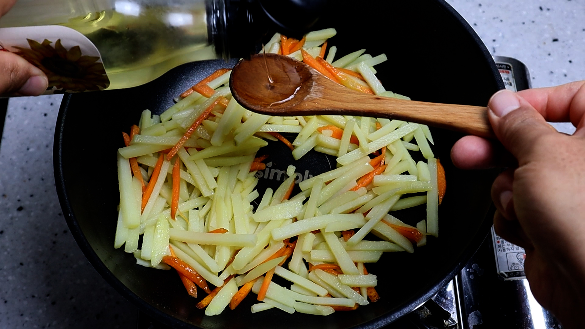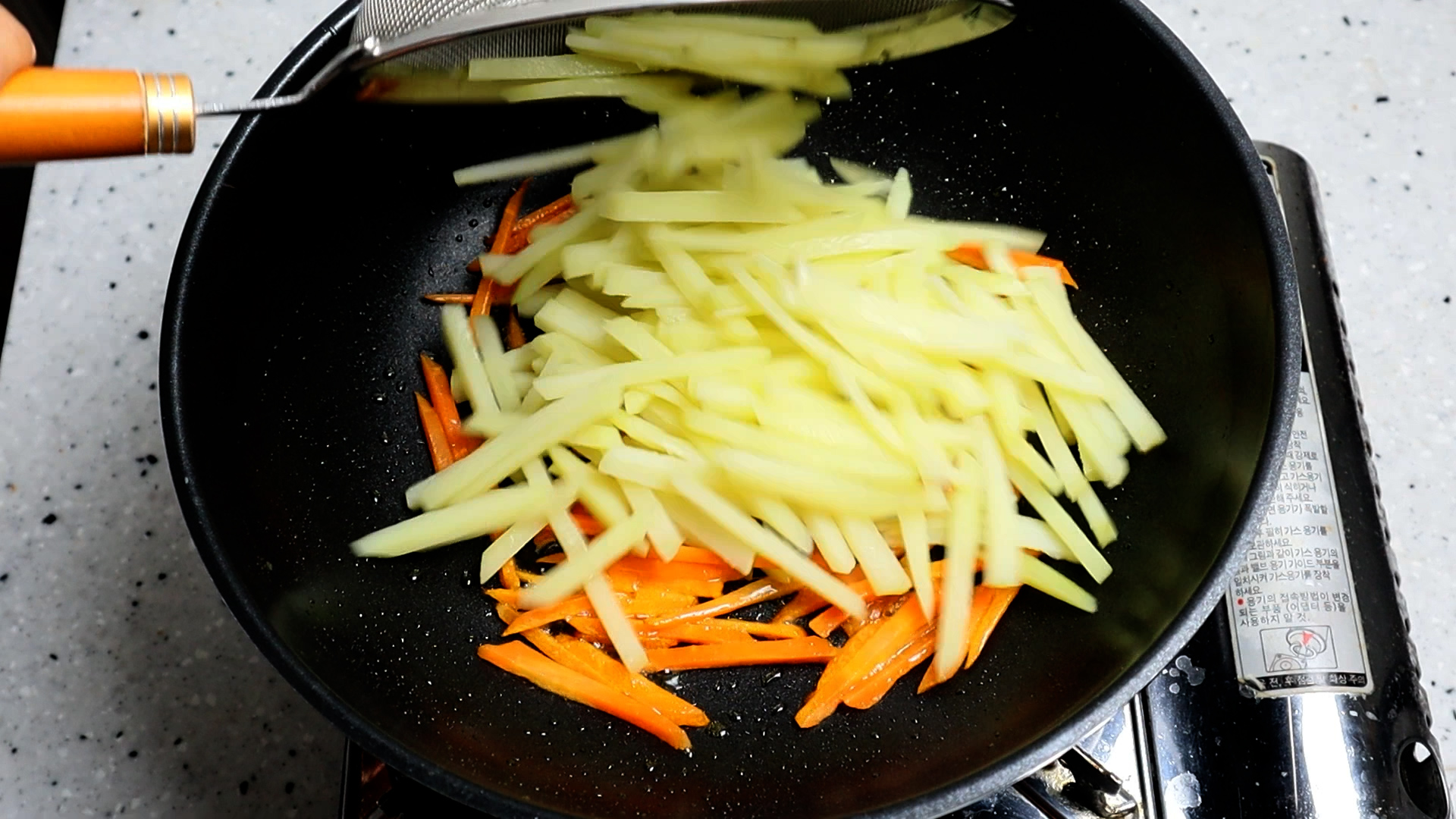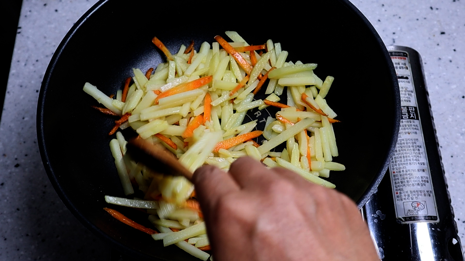 찬물에 전분기를 빼고 쫀득쫀득하게 감자볶음을 만들어도 좋아하지만