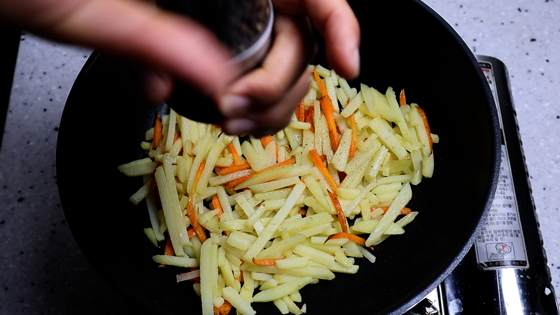 포슬포슬하게 즐기는 감자볶음! 한번 찌지고 볶아보세요!