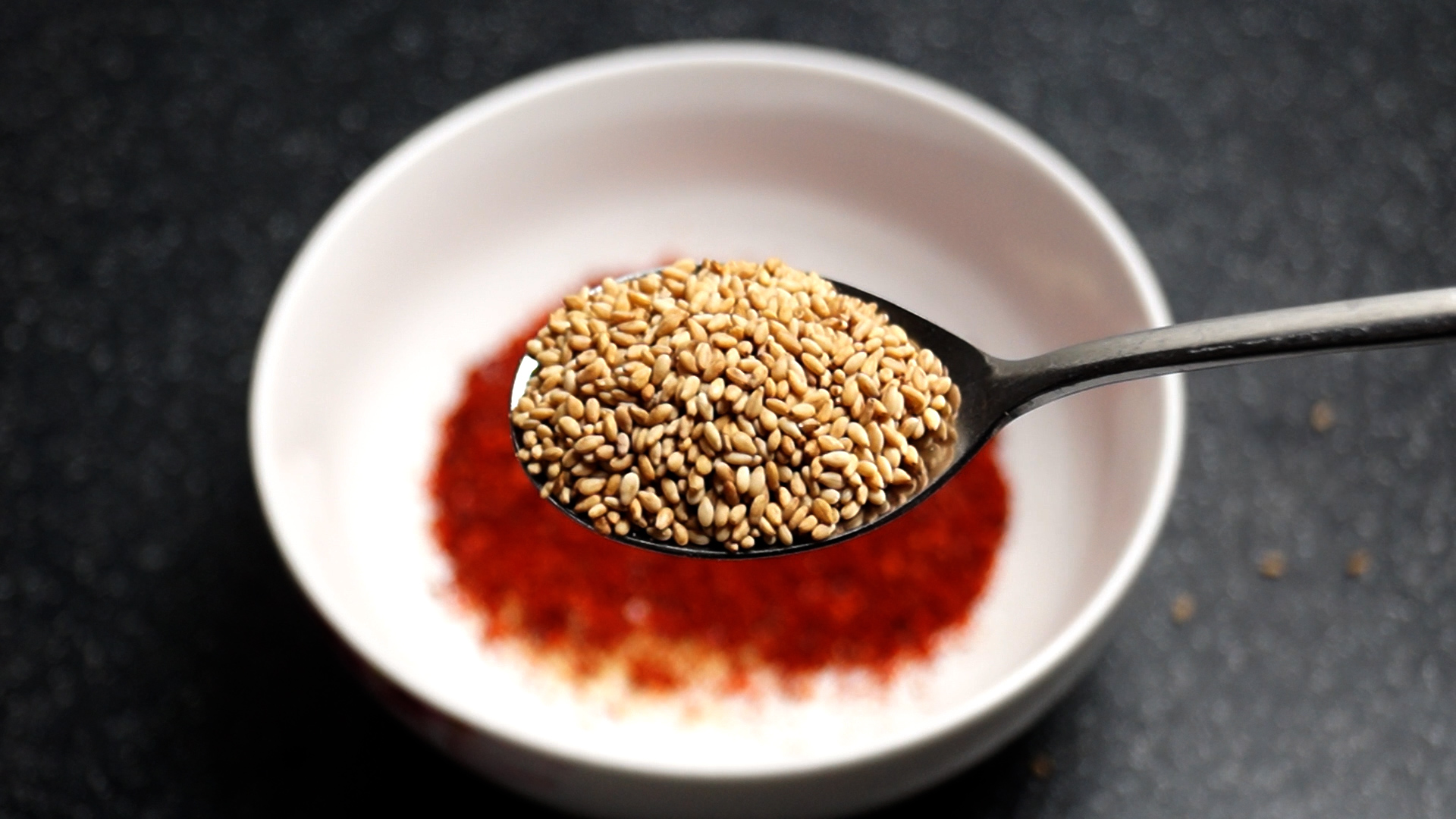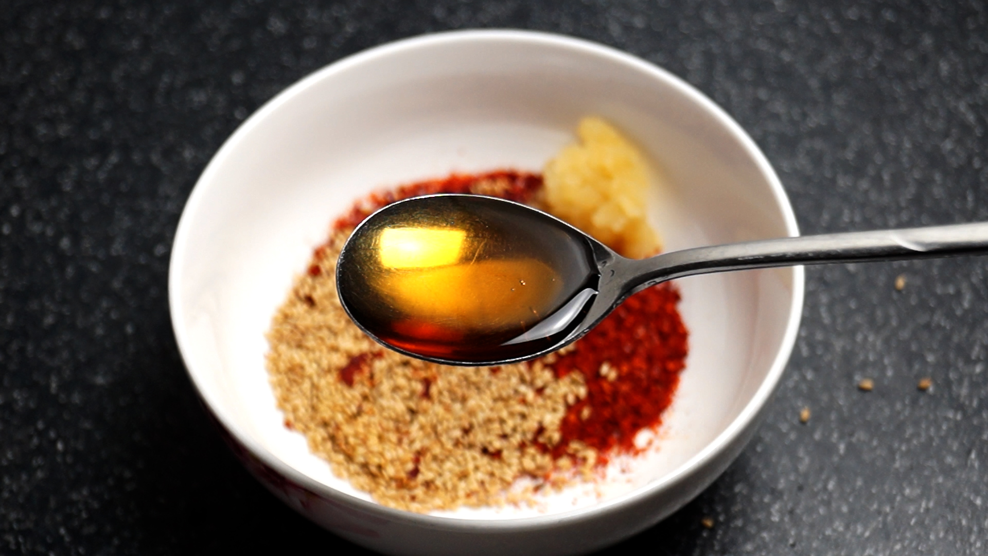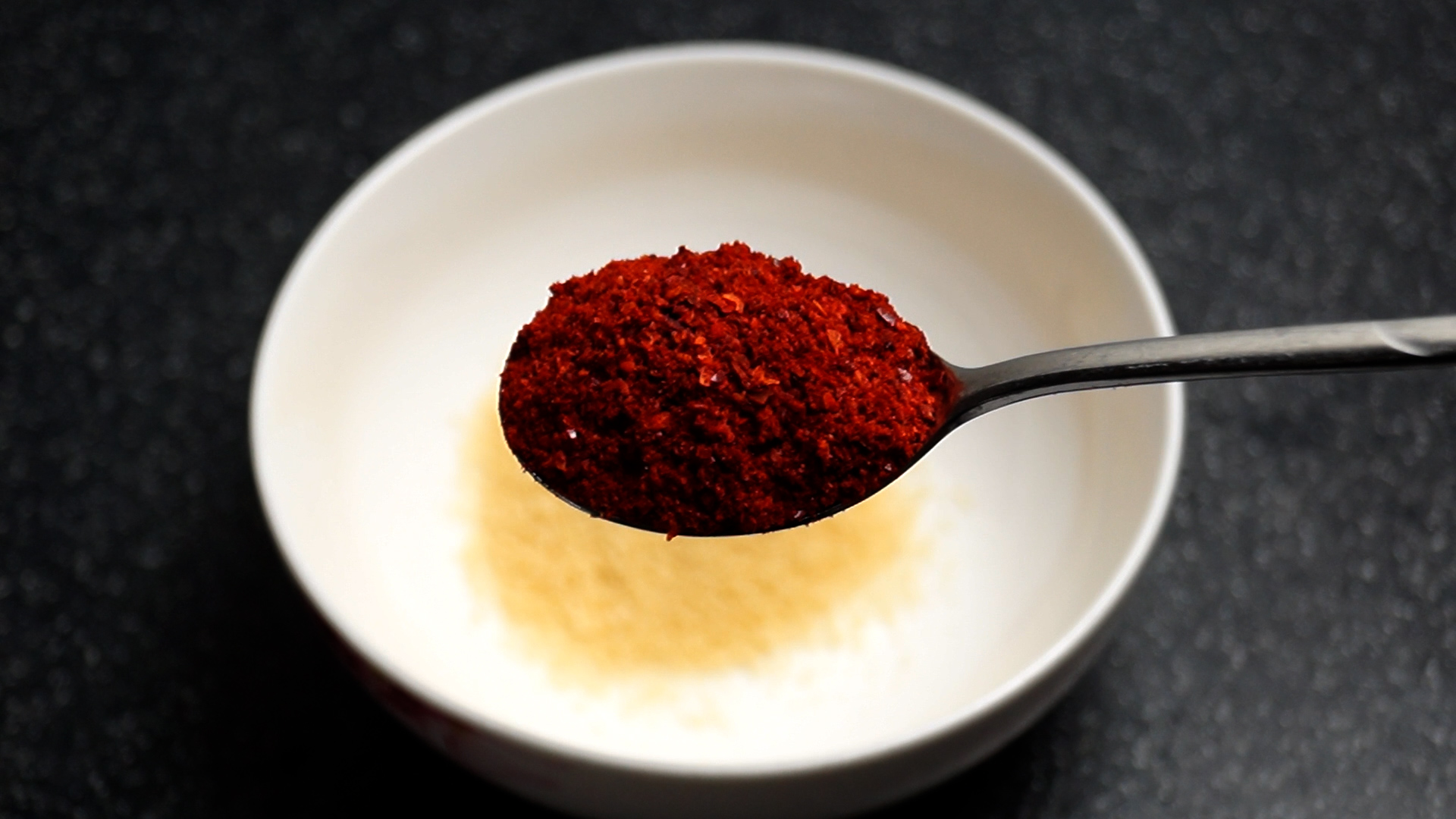 2. 중간입자 고추가루 2스푼 14g, 중국산은 고추 꼭지까지 갈아서 그런지 씹을때 꺼슬거리는게 많더라고요 가능하면 국산 사용하시는게 좋아요~