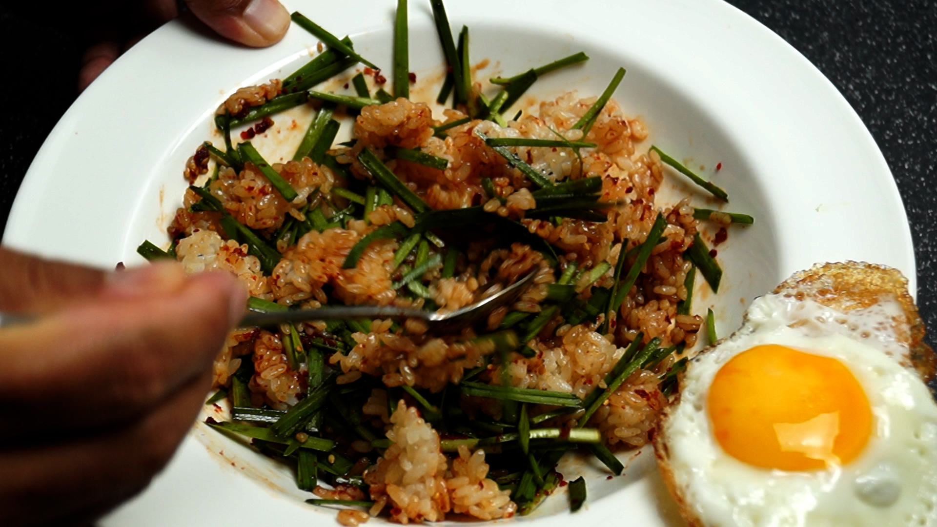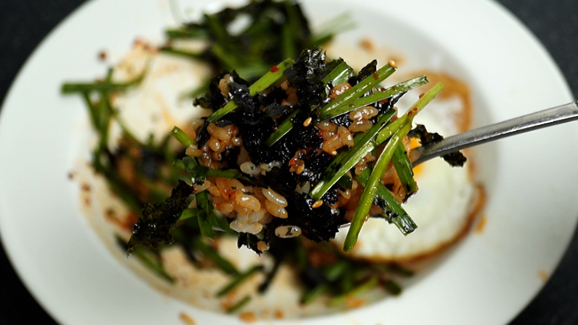 17. 그리고 부추를 아삭하게 살린 비빔밥을 맛있게 비벼보세요~ 향이 아주 끝내줄거에요