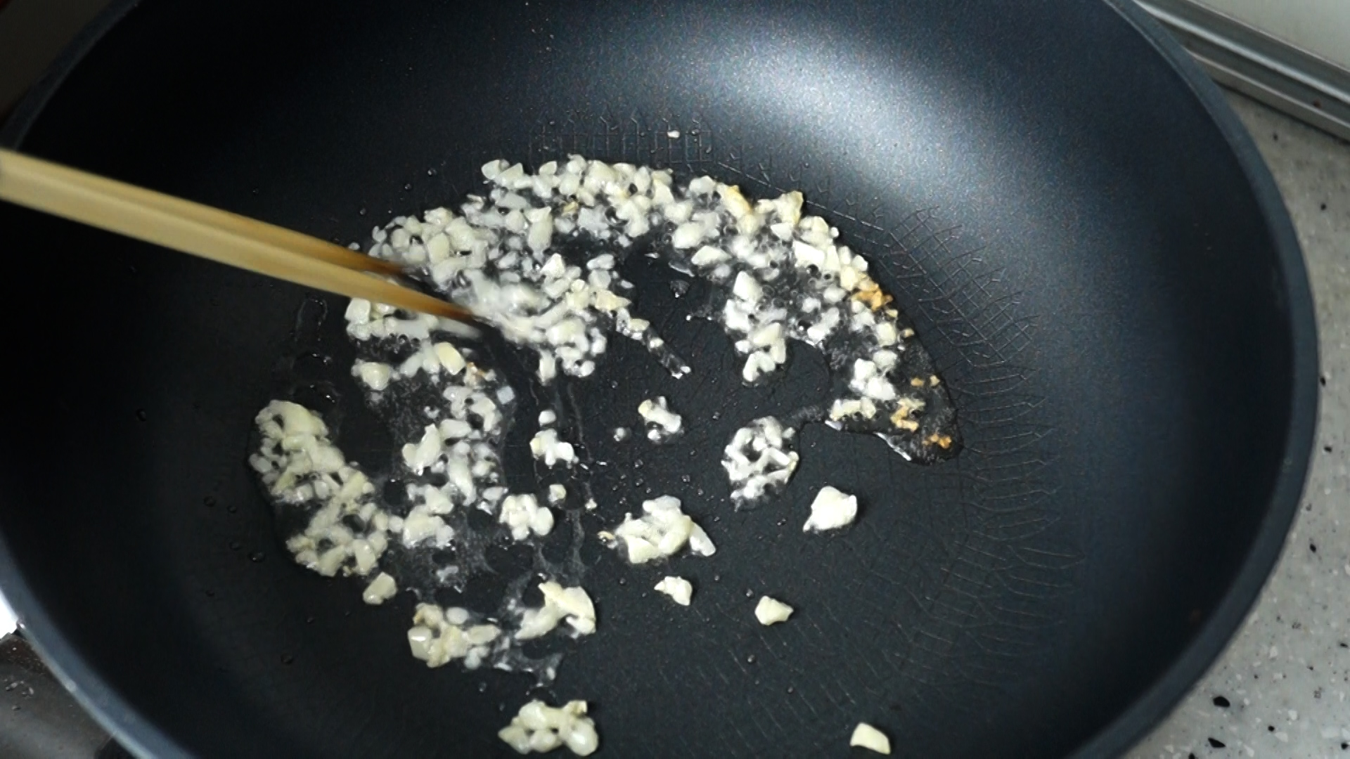 7. 중불에 1분 정도만 가볍게 볶아주세요. 너무 오래 볶으면 다음 볶는 과정에서 마늘이 탈수 있으니 1분 이내로 볶아주세요.