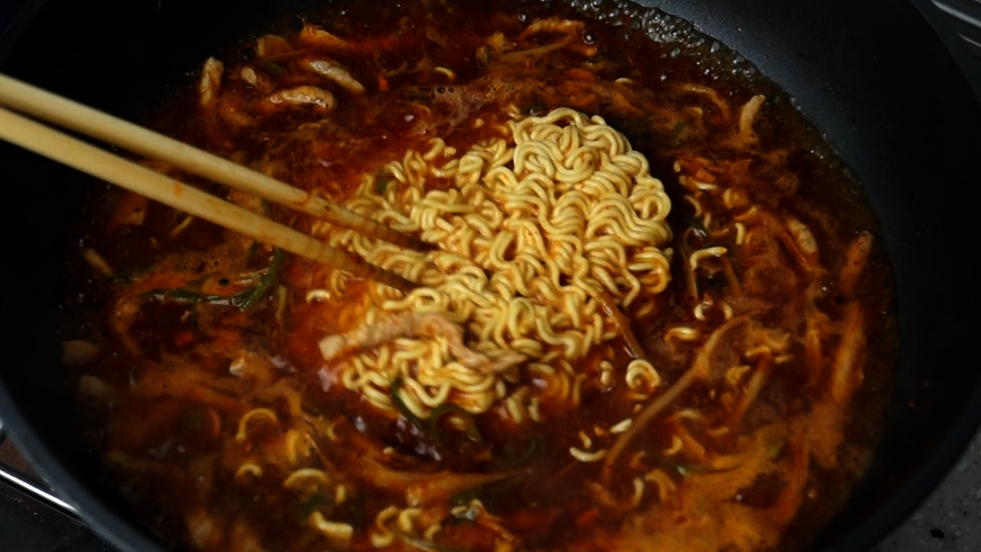 17. 웍에 끓이면 냄비보다 면이 덜 잠겨 군데군데 식감이 다르게 익을수 있으니 위아래 저어가면서 끓이는거 잊지마세요~