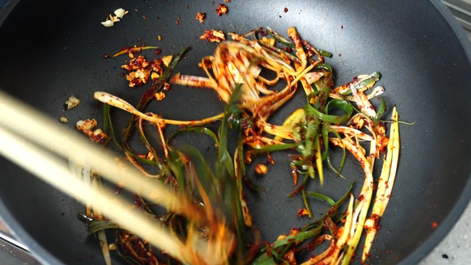 8. 대파를 넣고는 10~20초 정도 가볍게 한번 볶아주시고