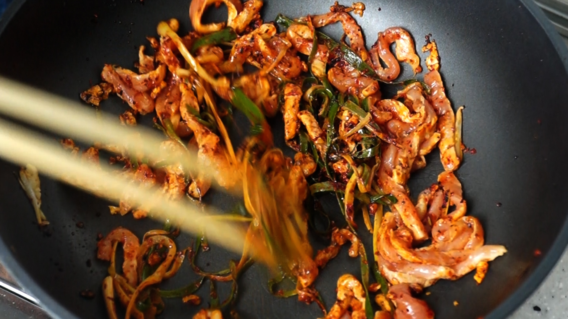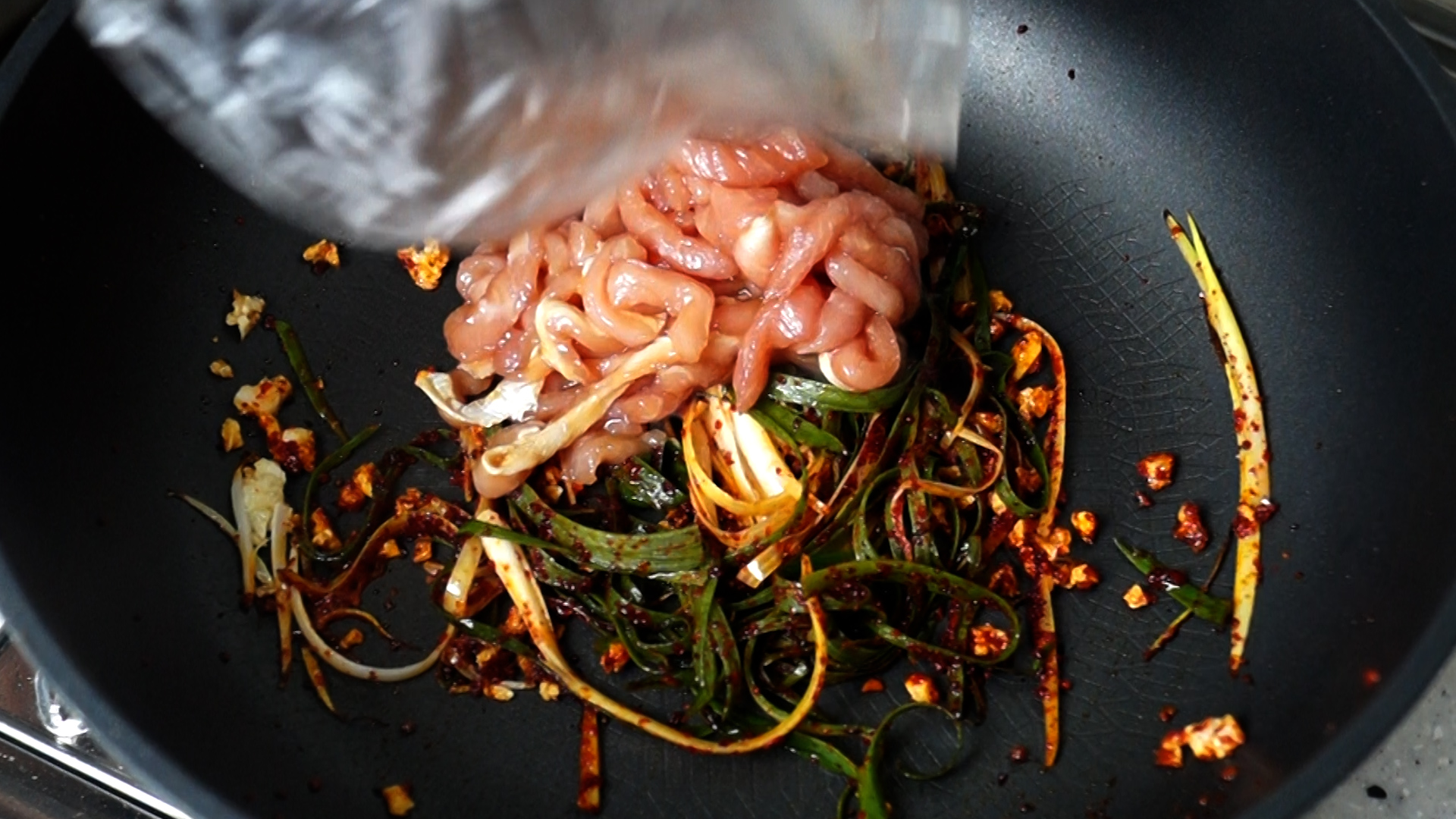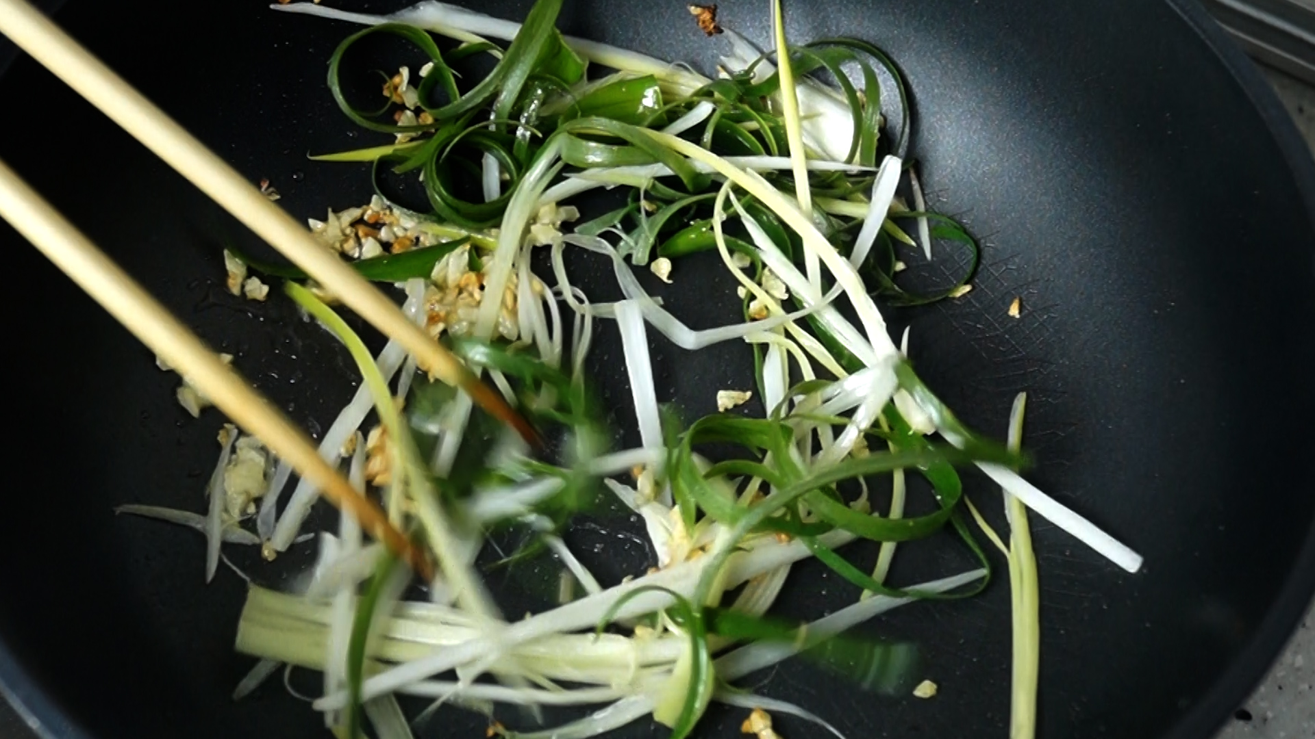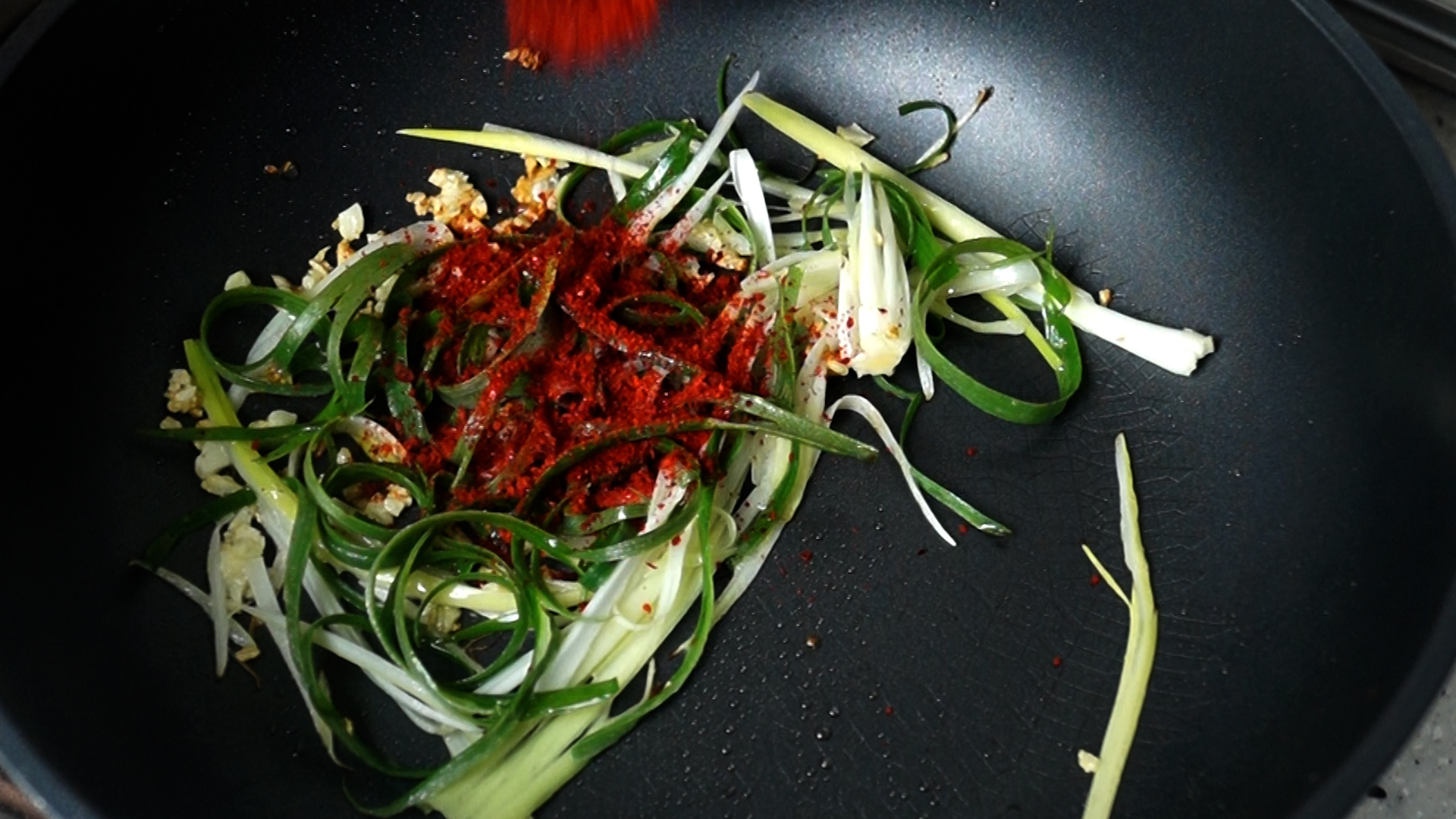10. 썰어둔 대파를 넣고 30초 정도를 섞어가며 볶아주세요.