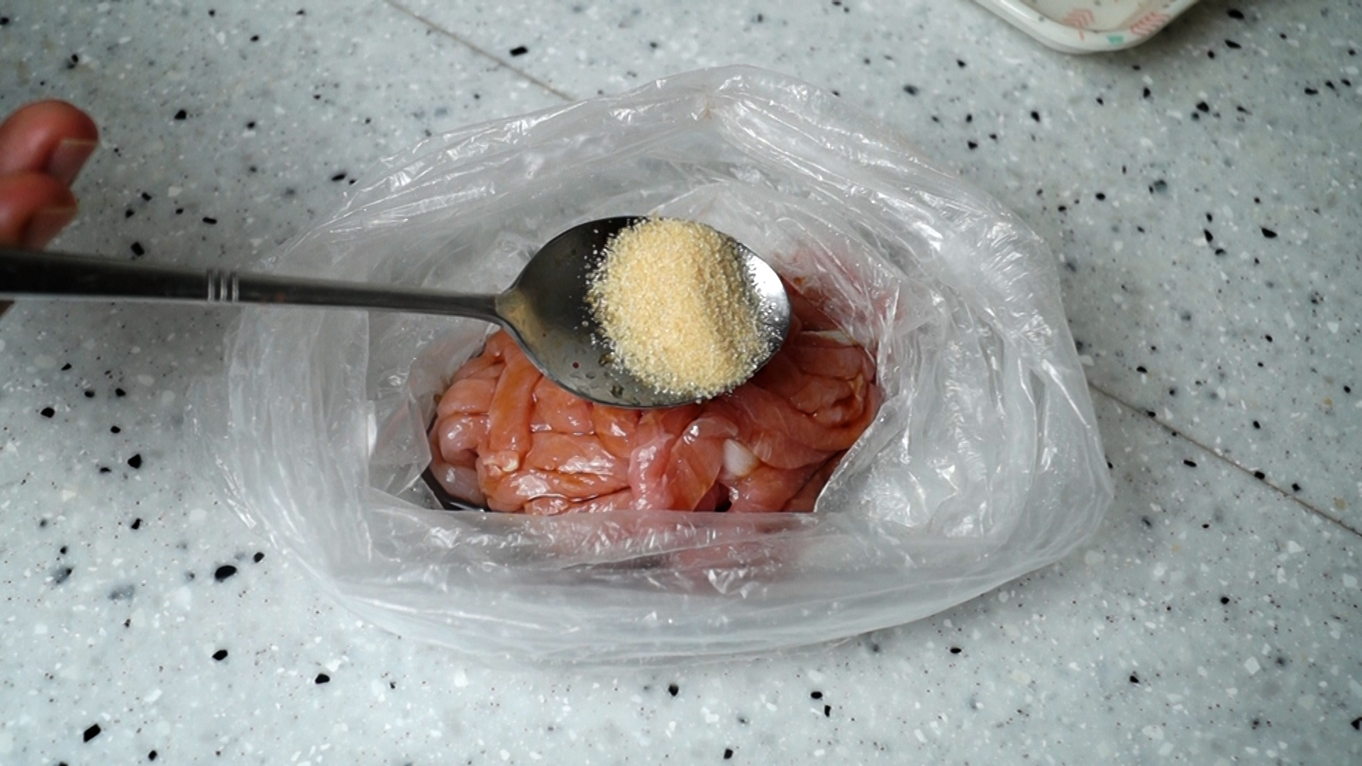 4. 설탕은 1/3스푼 3g 을 넣고 골고루 주물러서 10분 저도 밑간을 해주세요.