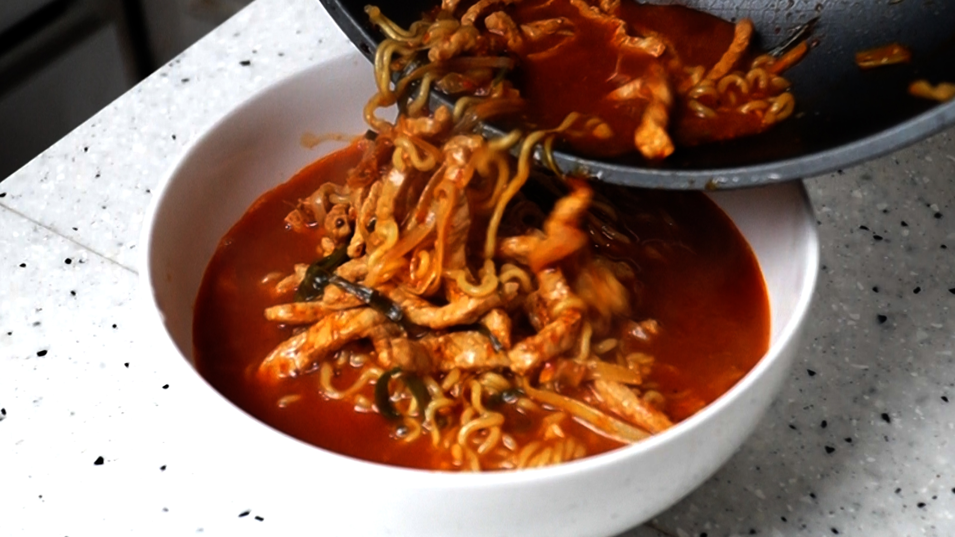 18. 라면 이쁘게 담으려면 면을 먼저 건져 담아주세요.
