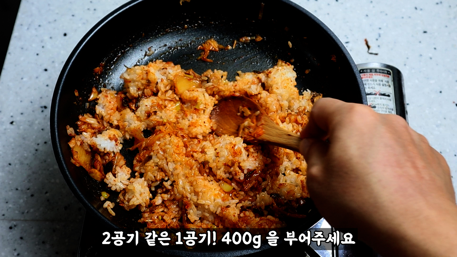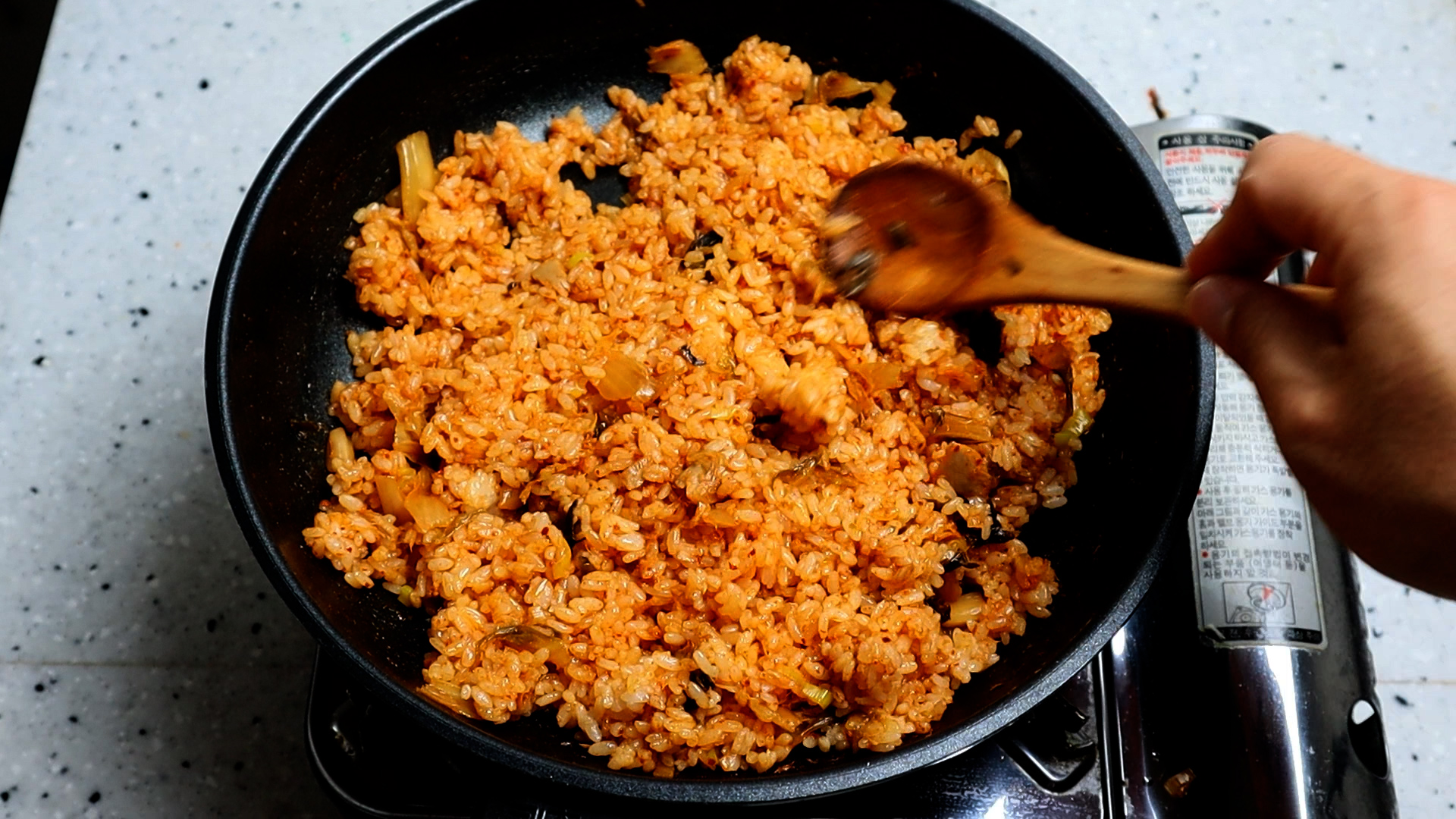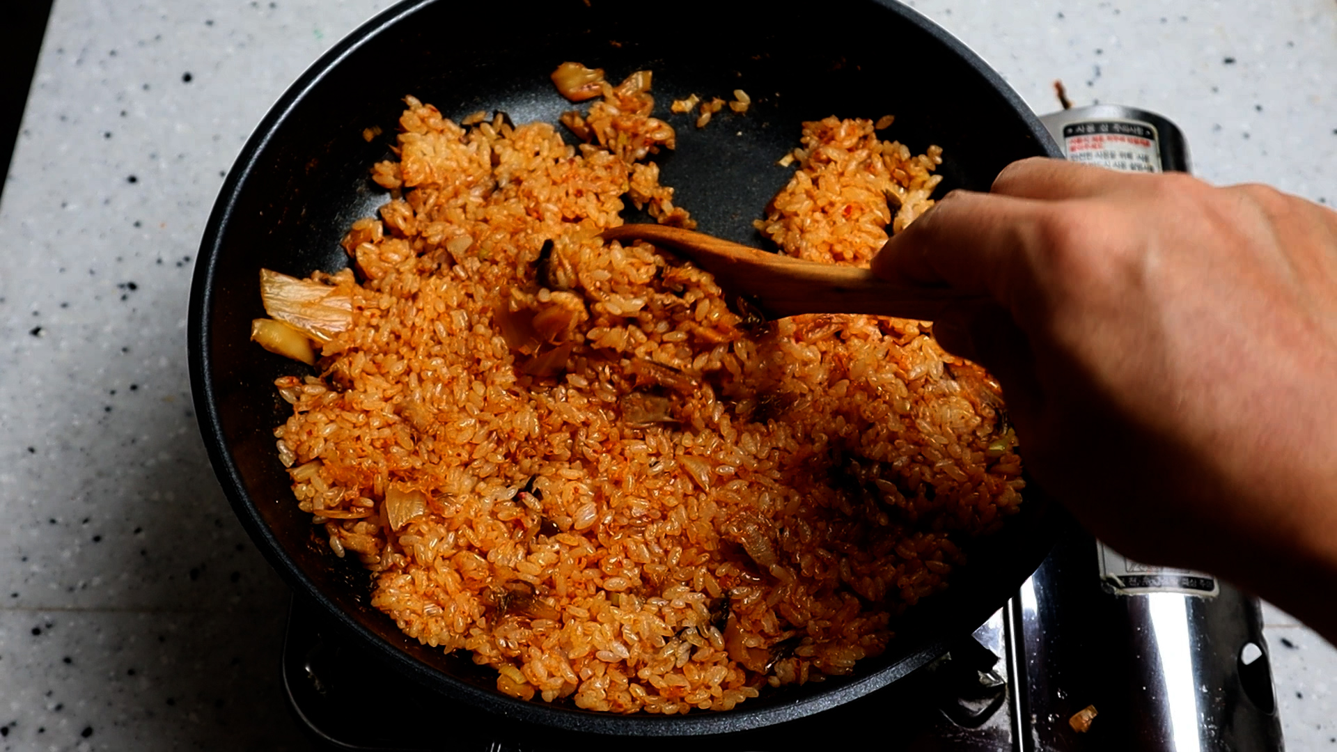 23. 그리고 밥알을 넓게넓게 펴서 20~30초를 가만히 놔두면서 밥알과 양념이 살짝살짝 늘러붙는 시간을 주세요!
