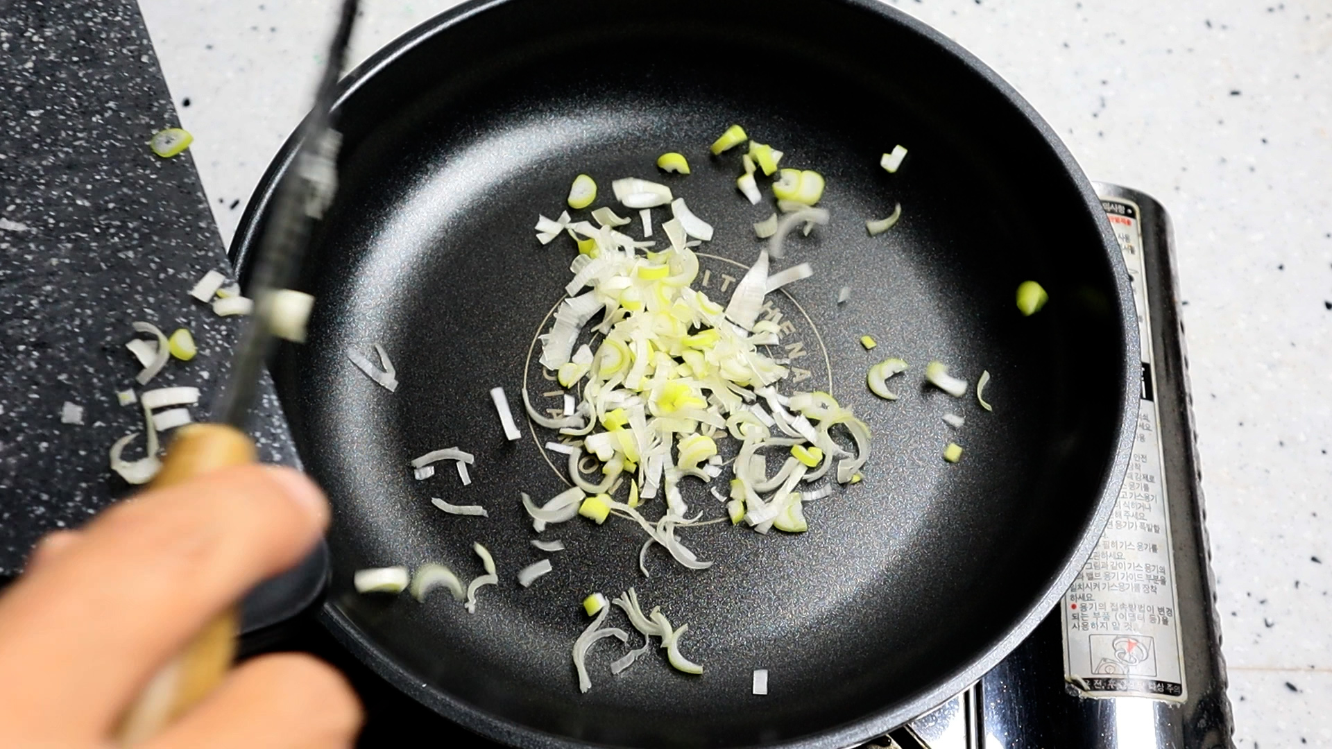 6. 바닥이 한뼘이상(20cm이상) 되는 팬에 대파를 던져넣어주세요.