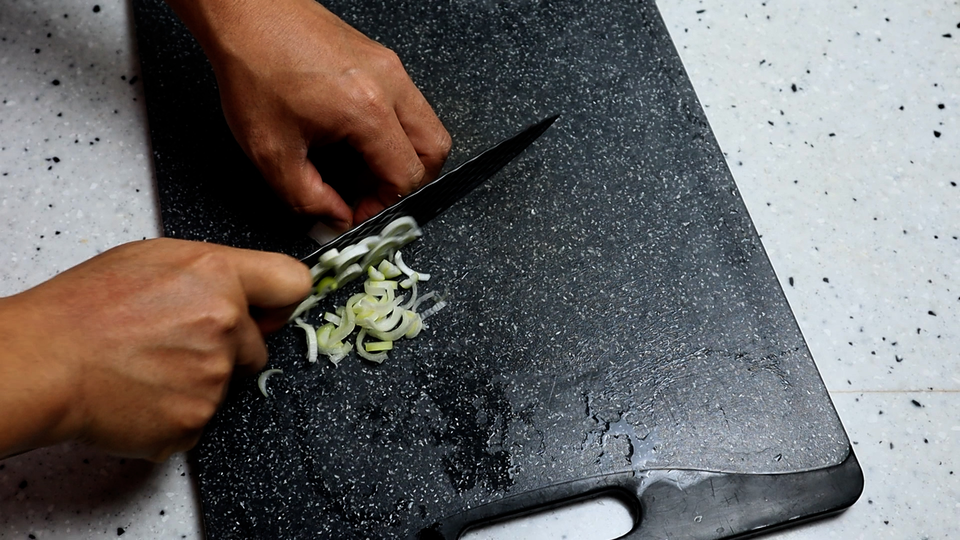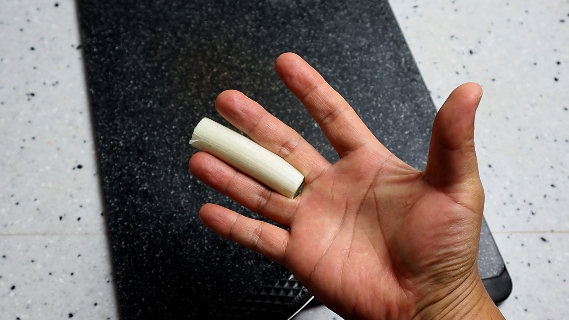 1. 대파를 흰대 위주로 20g 정도 준비해주세요. 마치 손가락 하나가 늘어난듯한 길이로 잘라주면 20g 정도가 됩니다!