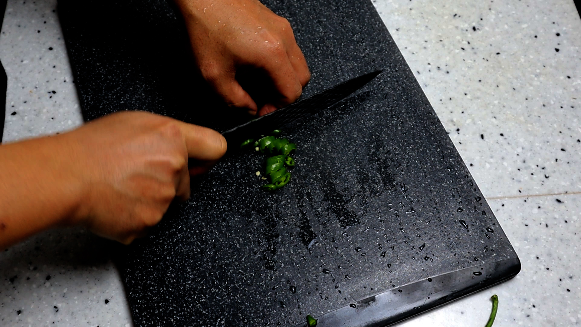 4. 고추를 대충대충 썰어주세요. 씨가 거슬거리는게 싫으시면 반으로 갈라 씨를 제거해 주시면 됩니다.