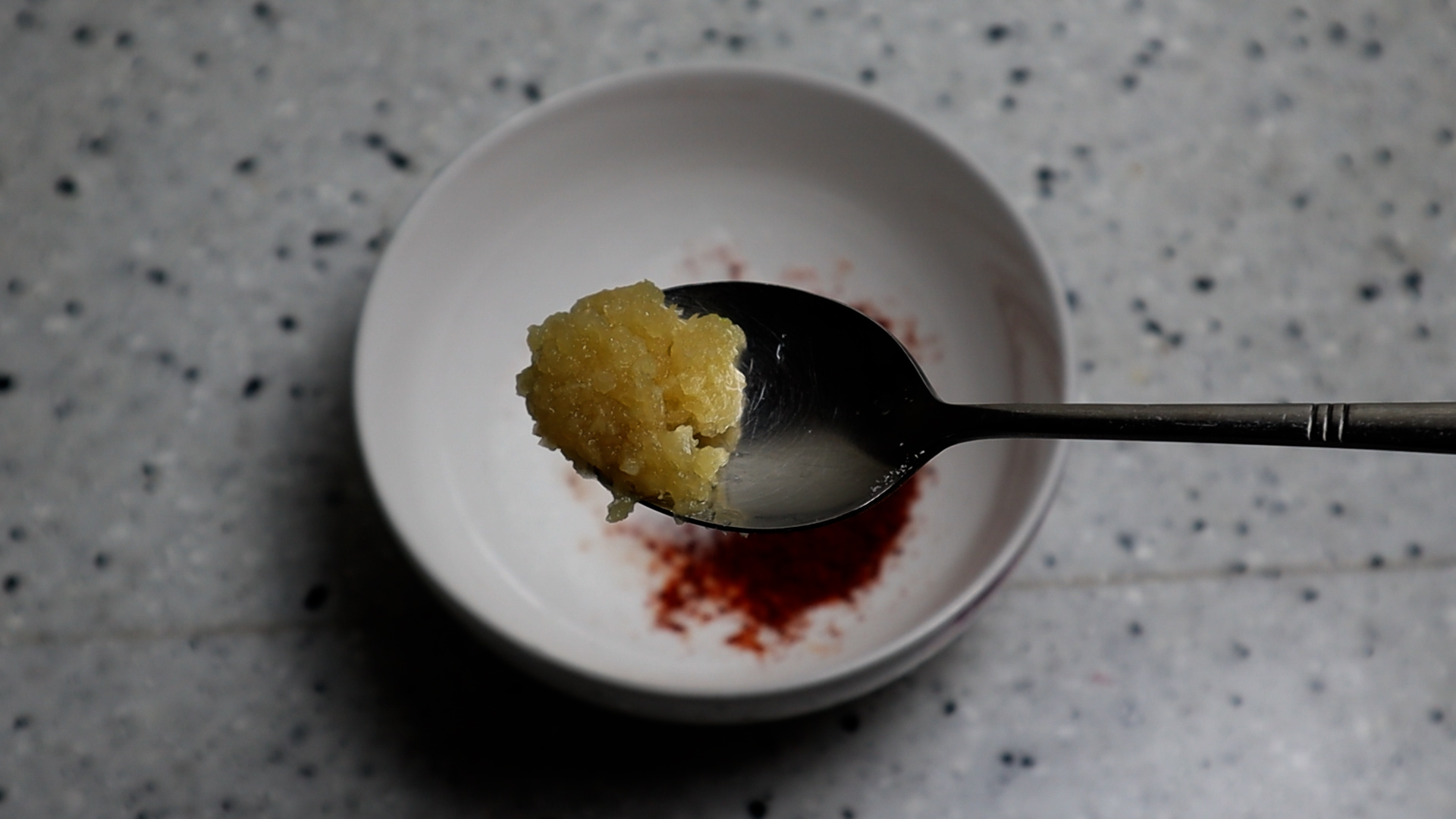 11. 입자가 곱게 갈린 간마늘 1/4스푼 5g 입자가 너무 굵으면 아중에 마늘 씹고 인상 쓸수도 있으니 최대한 고운 마늘을 사용하세요.