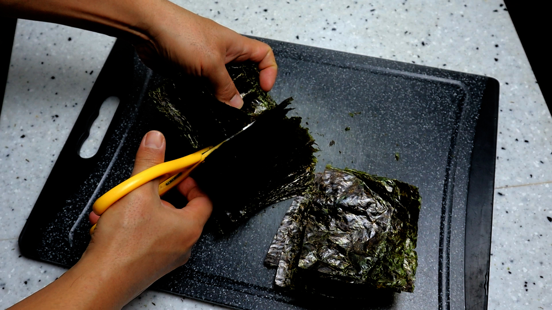 2. 맛있게 구운김은 기호에 따라 4~6등분 정도로 잘라주세요. 저는 6등분으로 자르는게 밥하고 먹기 딱! 좋더라고요~