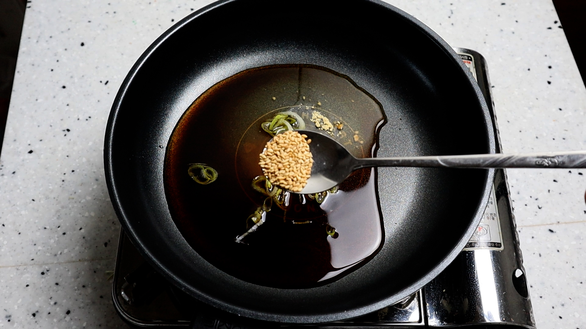 28. 버터나 참기름 넣고 대략 2~3분 정도를 볶아주세요.
