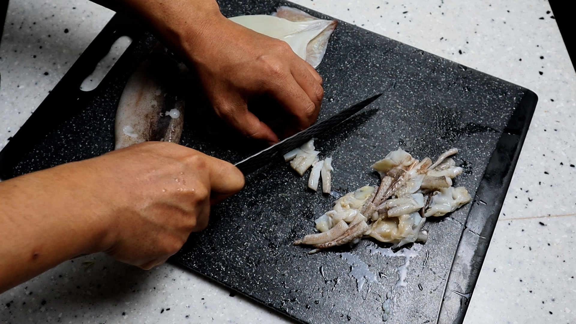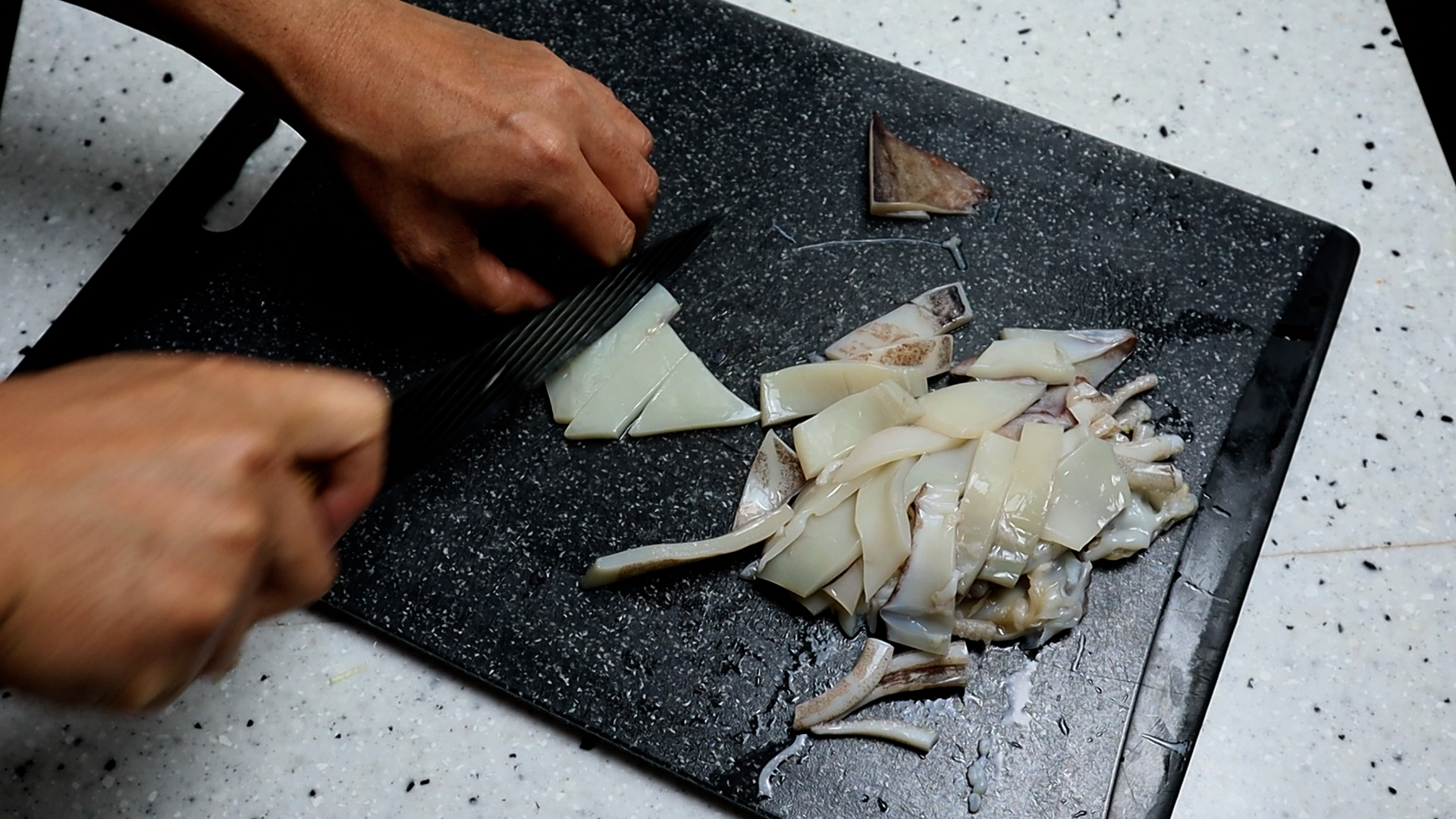 14. 오징어는 먹기 좋은 크기로 썰어주세요.