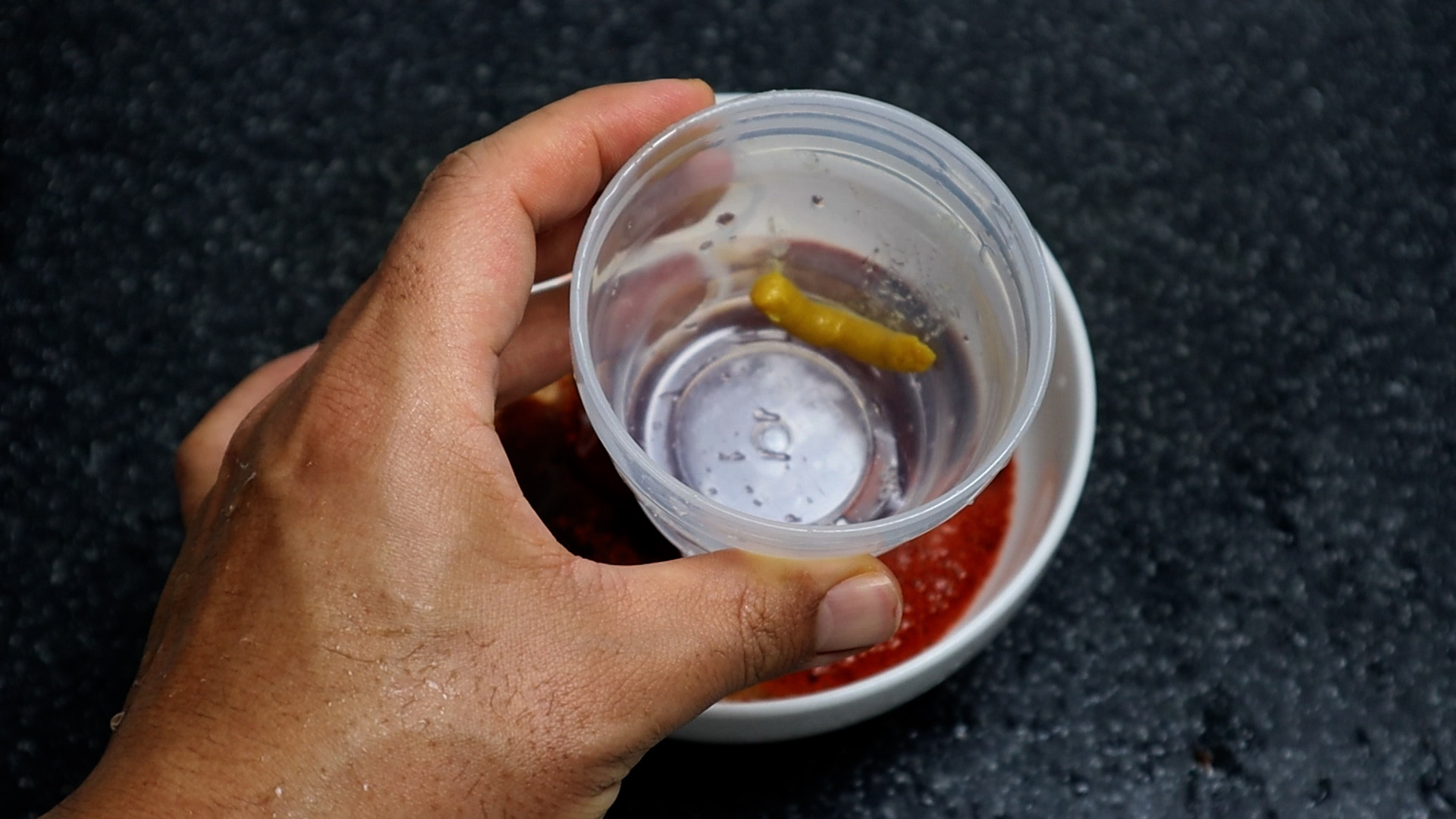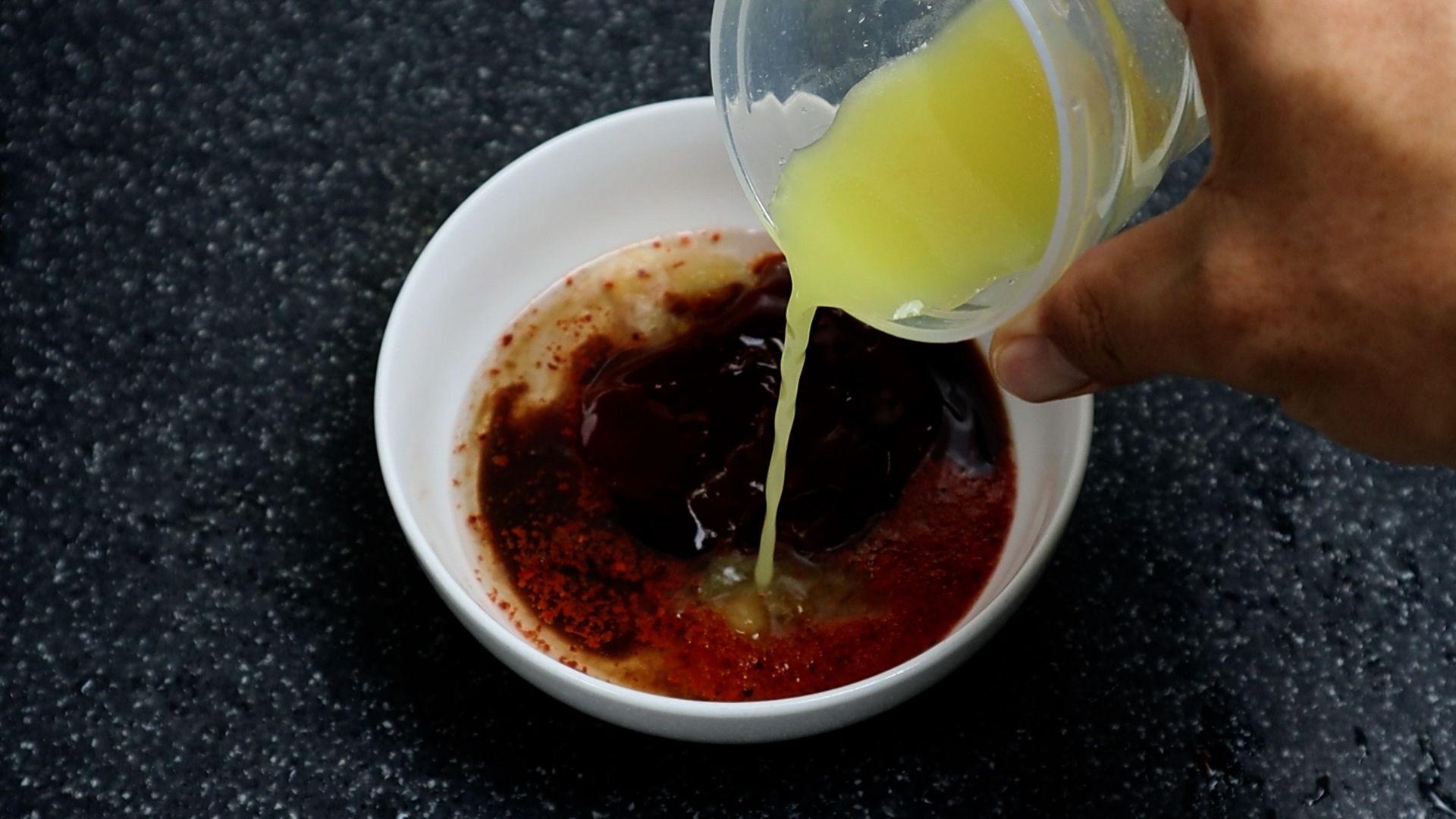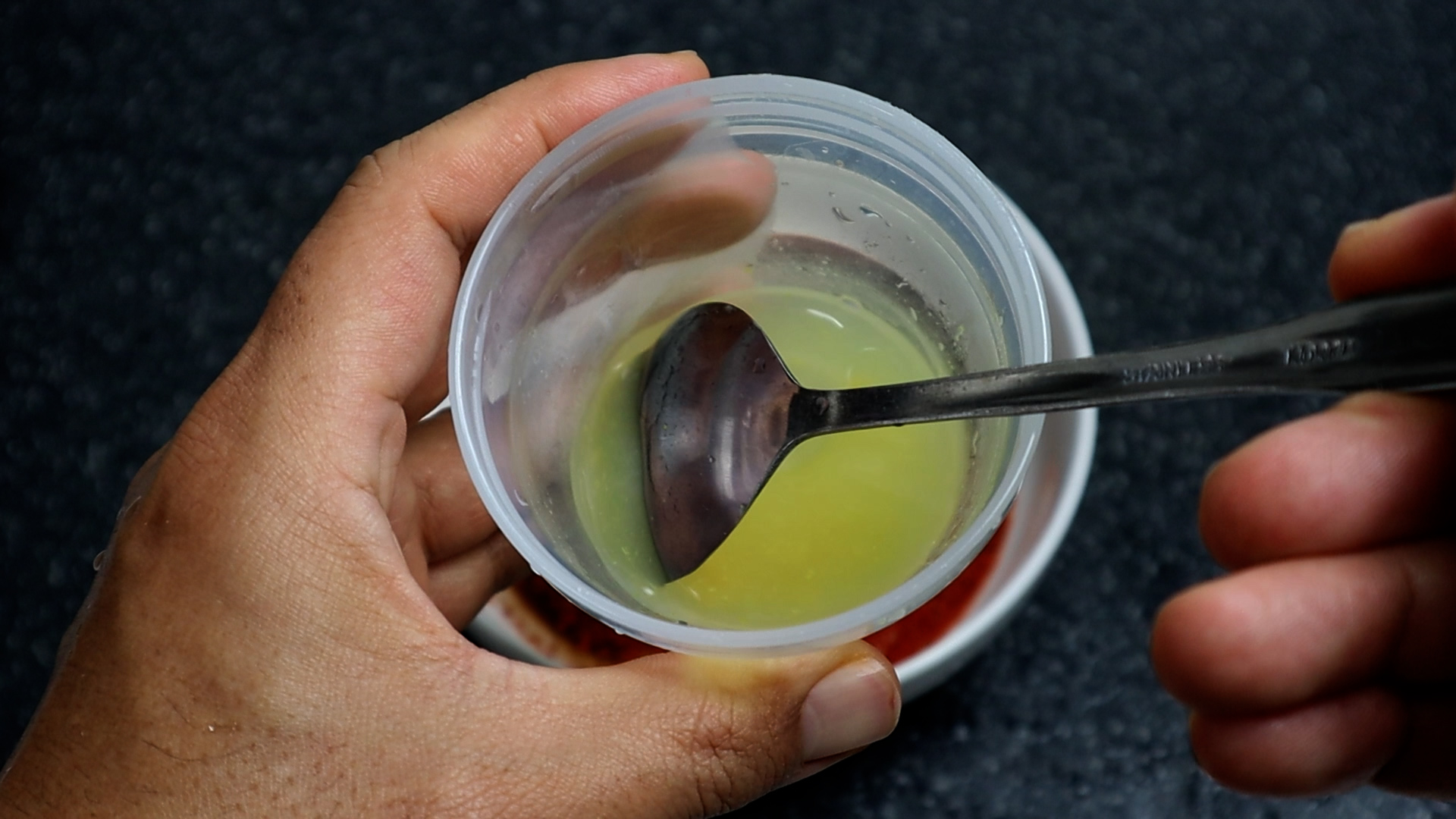 9. 연겨자를 양념에 바로 넣으면 겨자가 덩어리져서 잘 안녹을수 있으니 이런 컵에 담아 준 다음
