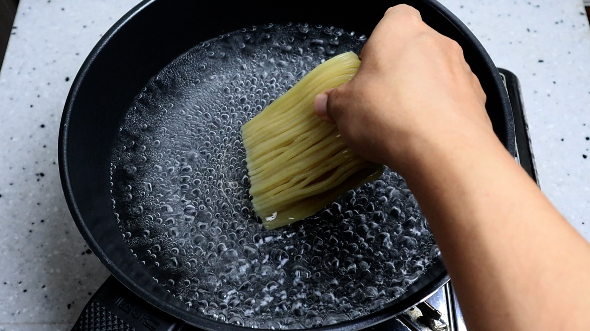16. 쫄면을 끓는물에 삶아주세요. 양념이 대략 쫄면 2인분을 비빌수 있는 양이니 참고하세요~