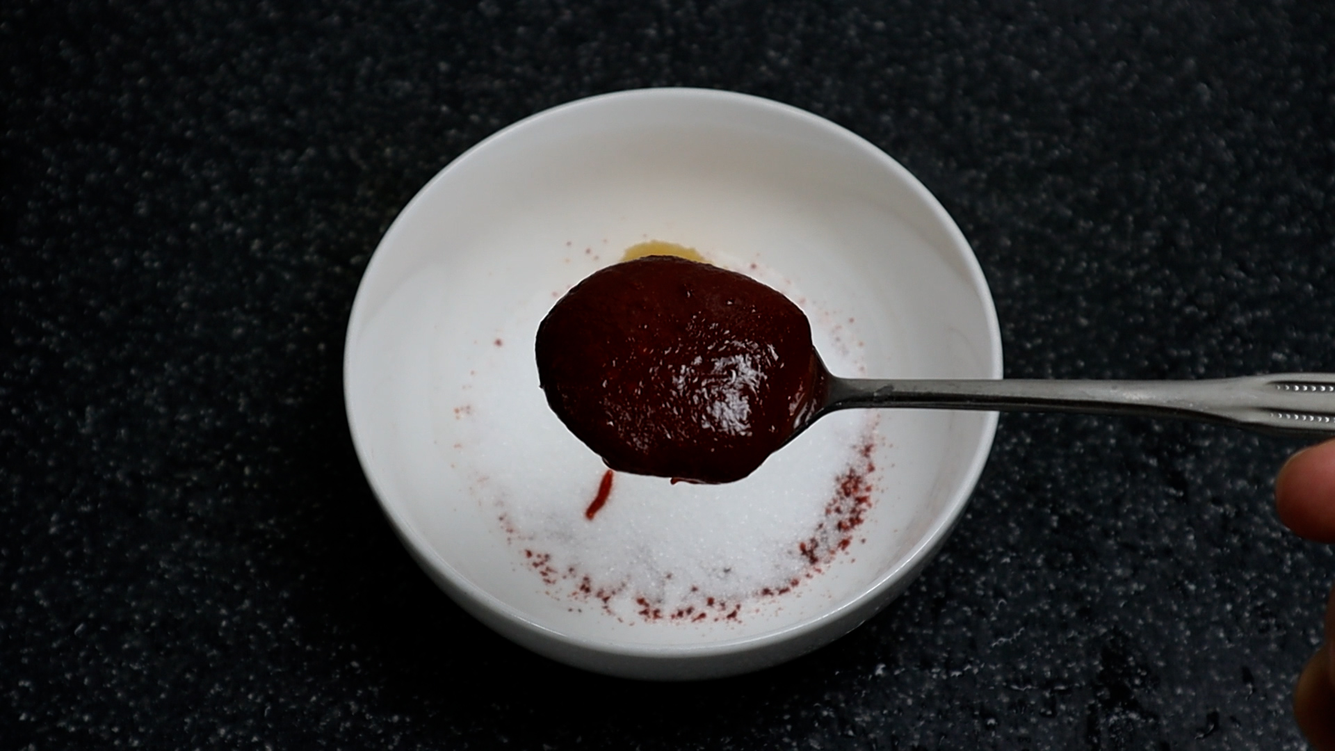 4. 고추장 2스푼 60g, 고추장은 수분이 날아가 꾸덕해져 밀도가 달라졌거나 퍼올리는 형태에 따라 무게 편차가 심하죠~ 그럴땐! 다 만들어 놓고 설탕,식초 적당히 가감해서 맛을 맞춰주시면 끝!