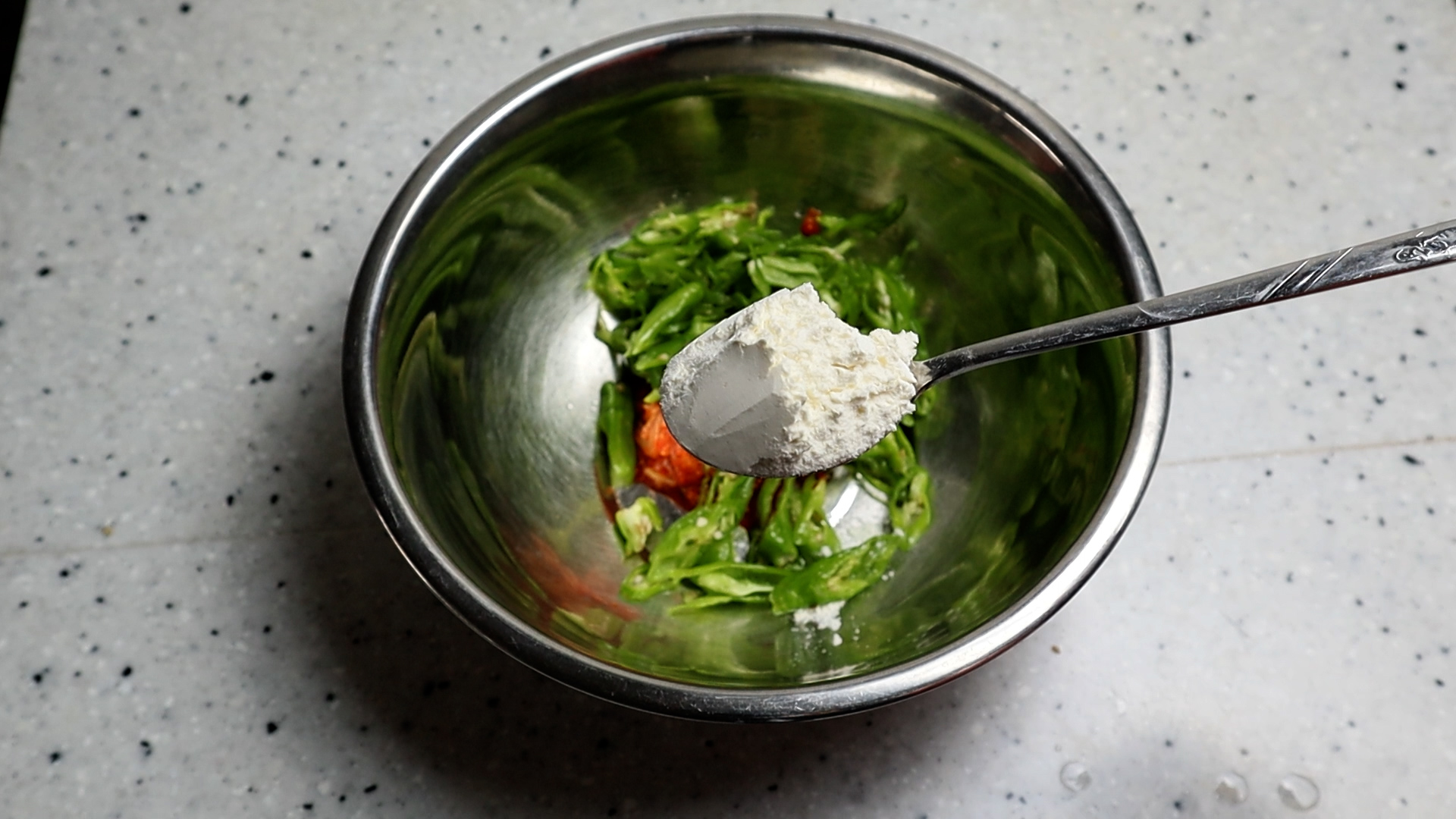 15. 재료가 가진 수분상태 따라서 반죽의 상태가 항상 같을수 없으니 묽으면 부침가루를 너무 되면 물을 추가해서 점도를 맞춰주세요.