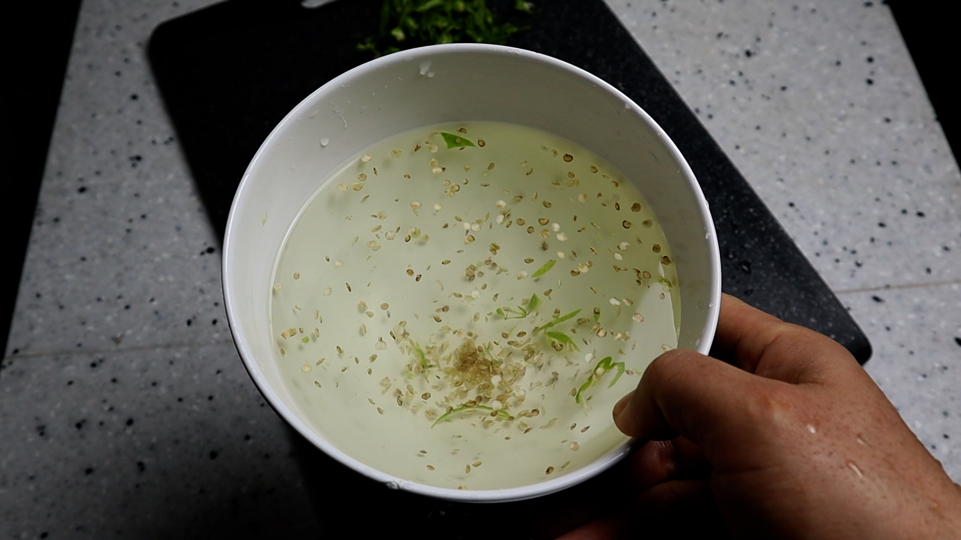 6. 고추 부분만 따로 건져내면 이렇게 씨가 많이 빠져 나와 있을거에요!