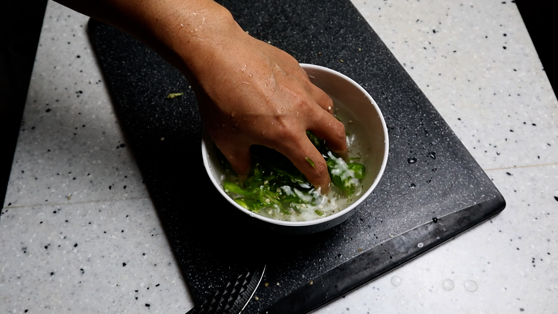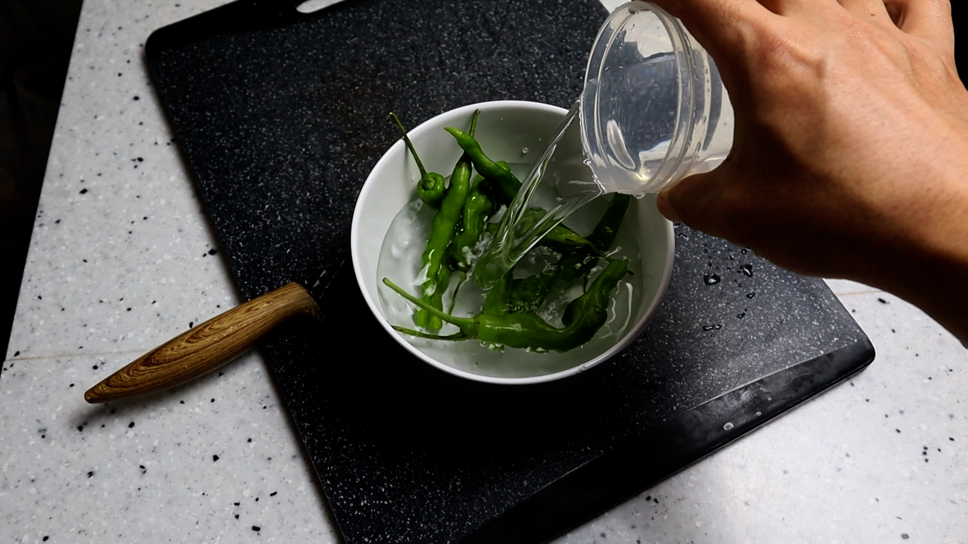 5. 꽈리고추는 모양 특성상 씨 제거가 용이하지 않아요~ 그래도 씨를 빼고 싶으시면 물에 담궈서 가볍게 흔들어보세요.