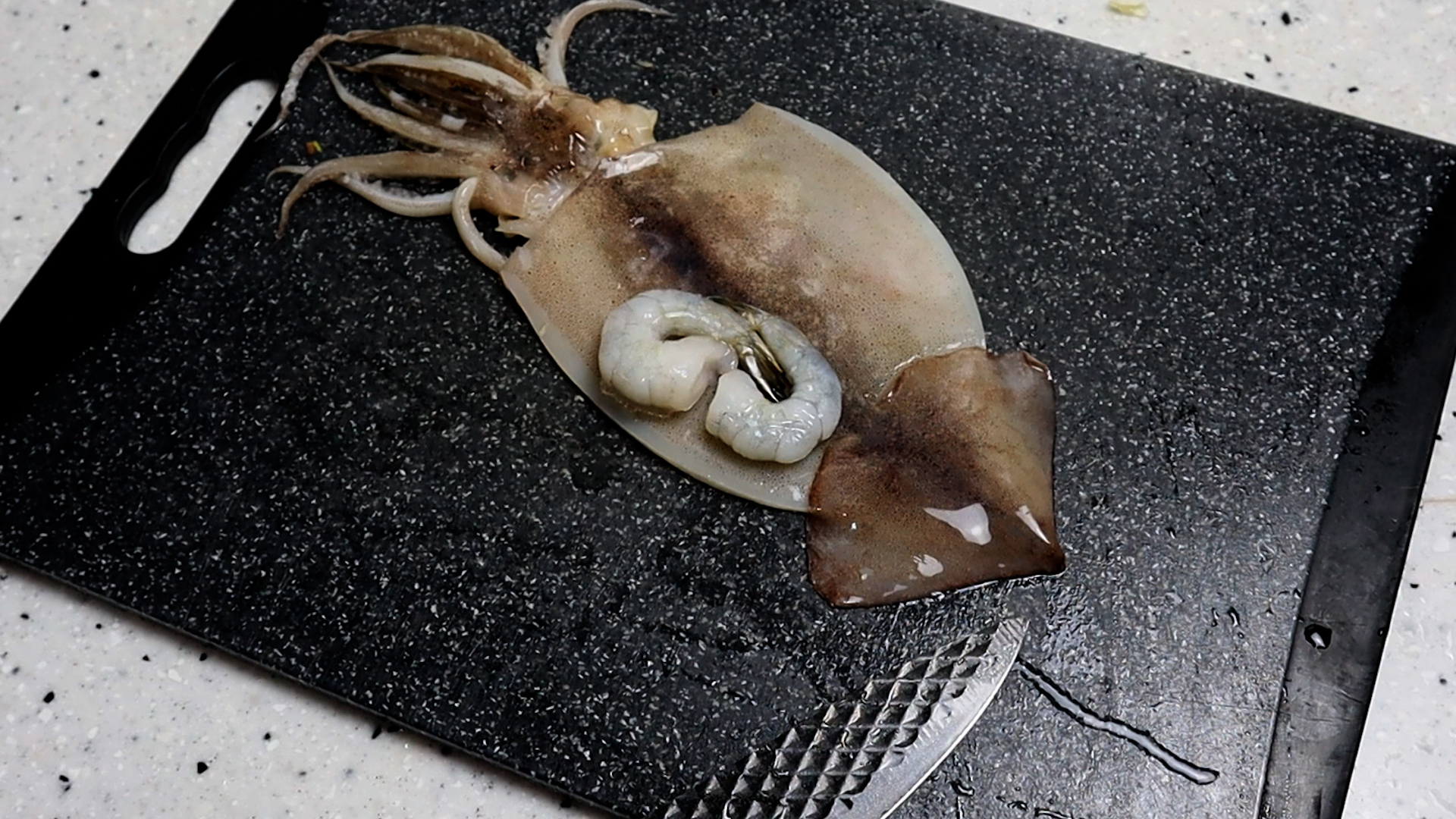 12. 오징어 작은거 1마리,탈각새우 2마리를 준비해주세요.
