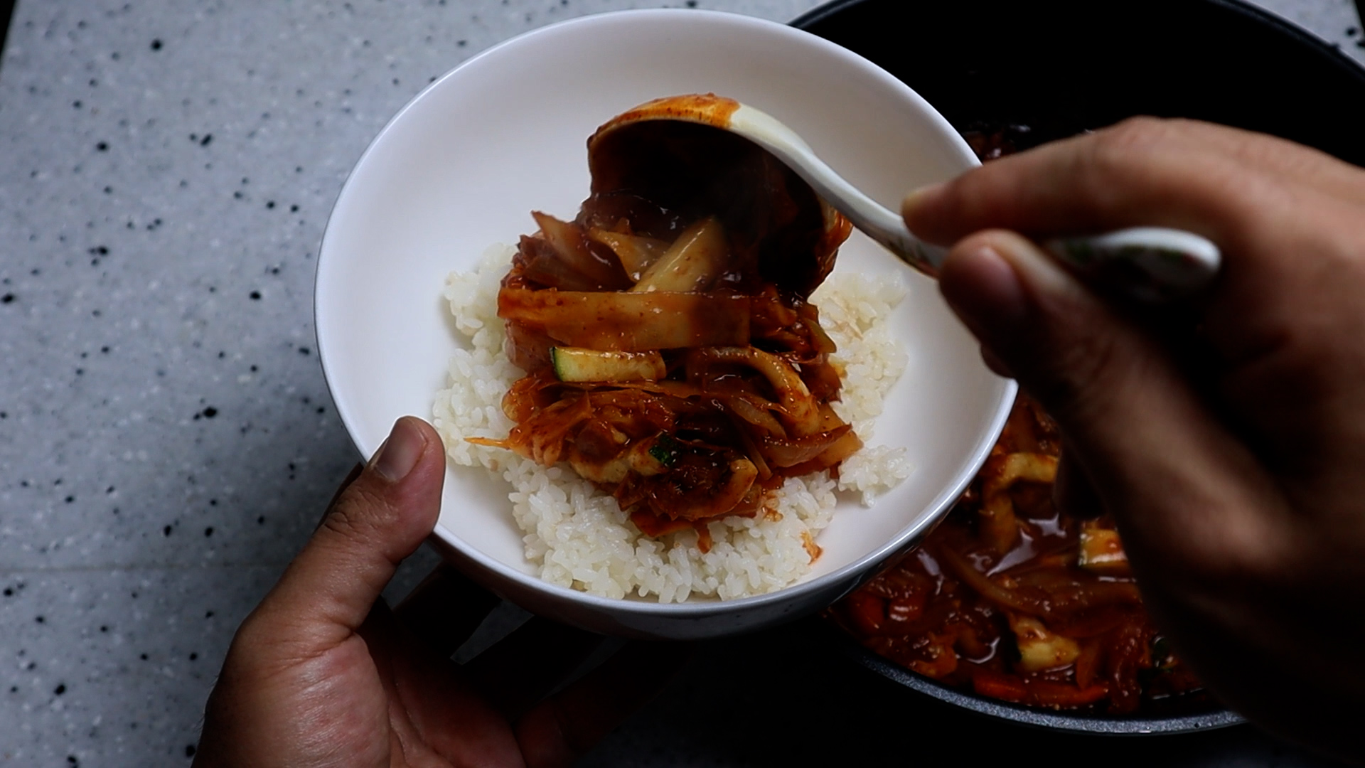 28. 밥위에 양념 적당량 올린다음