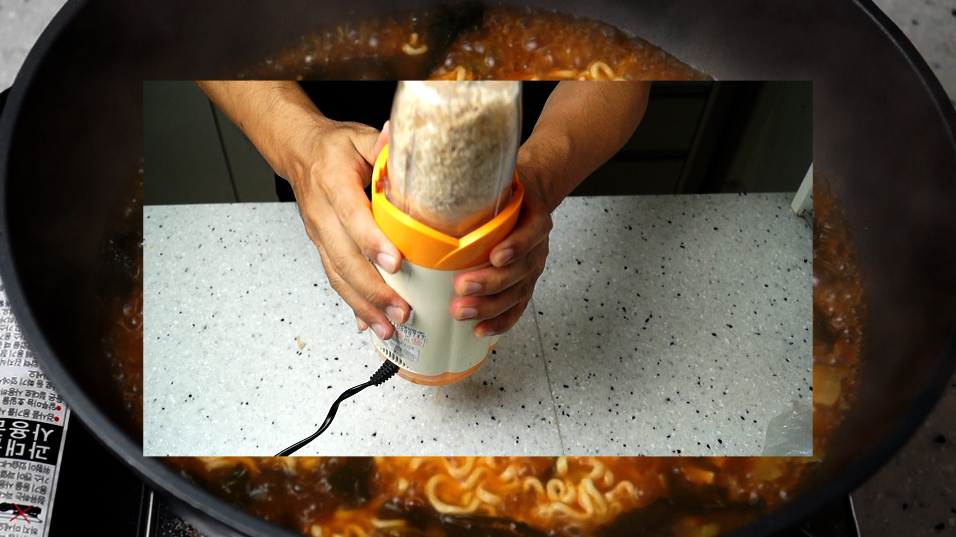 7. 믹서기에 최대한 곱게곱게 갈아서 사용해야 국물 먹을때 호로록 호로록~ 같이 먹을수 있어요. 너무 굵으면 그릇바닥에 가라앉은 오징어가 아까울뿐 아니라 국물향고 좀 덜하게 날거에요