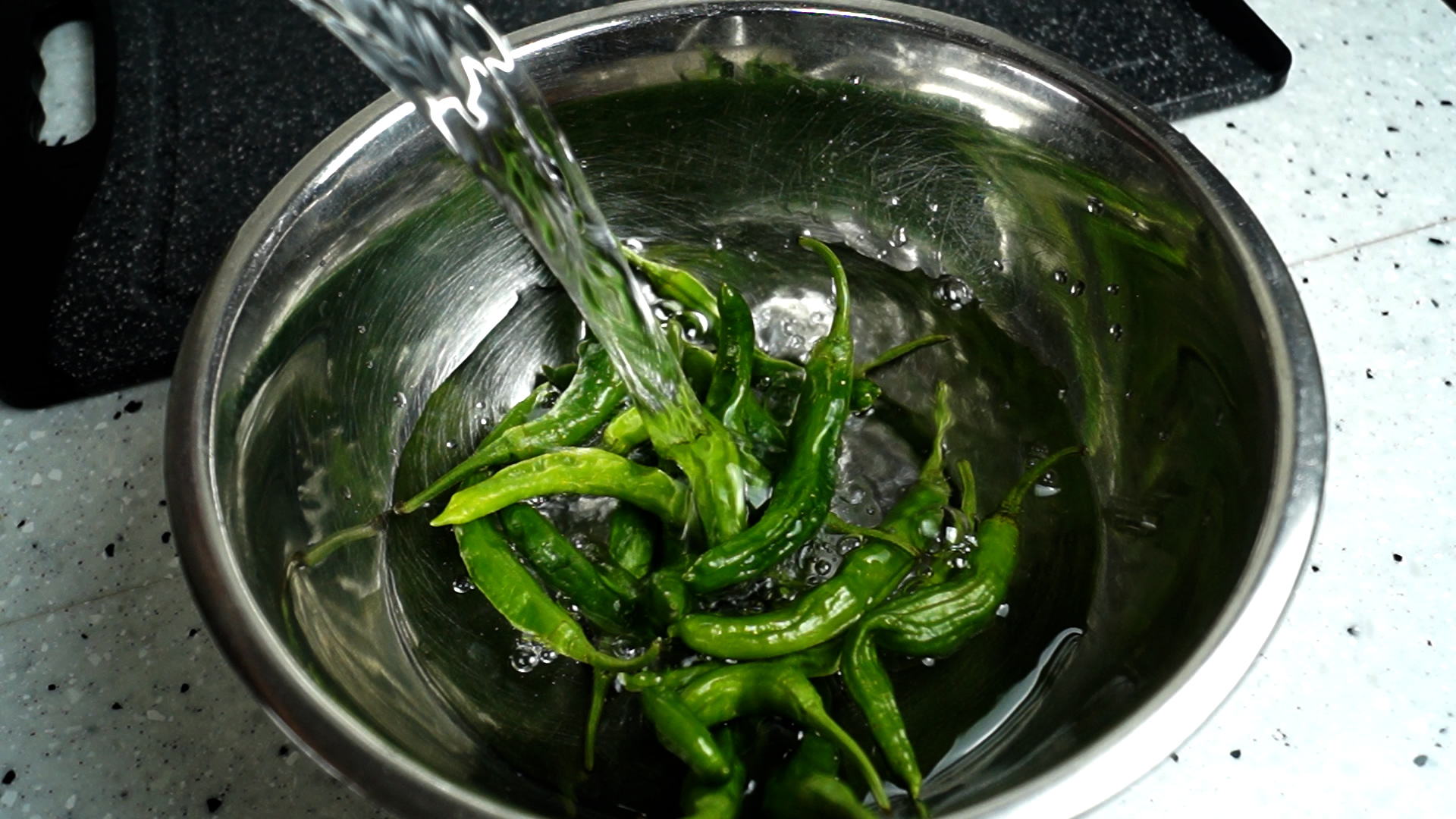 1. 꽈리고추에 찬물을 부어 20분 불린 다음 깨끗한 물에 2~3차례 헹궈주세요.