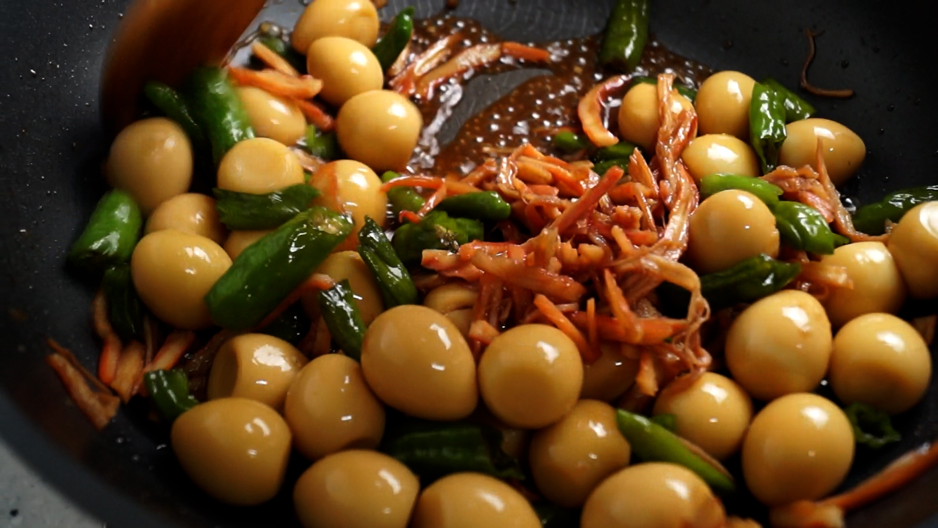 6. 냄비에 소스를 붓고 메추리알을 넣고 강불에 소스가 끓으면 2~3분 정도 끓여주세요.