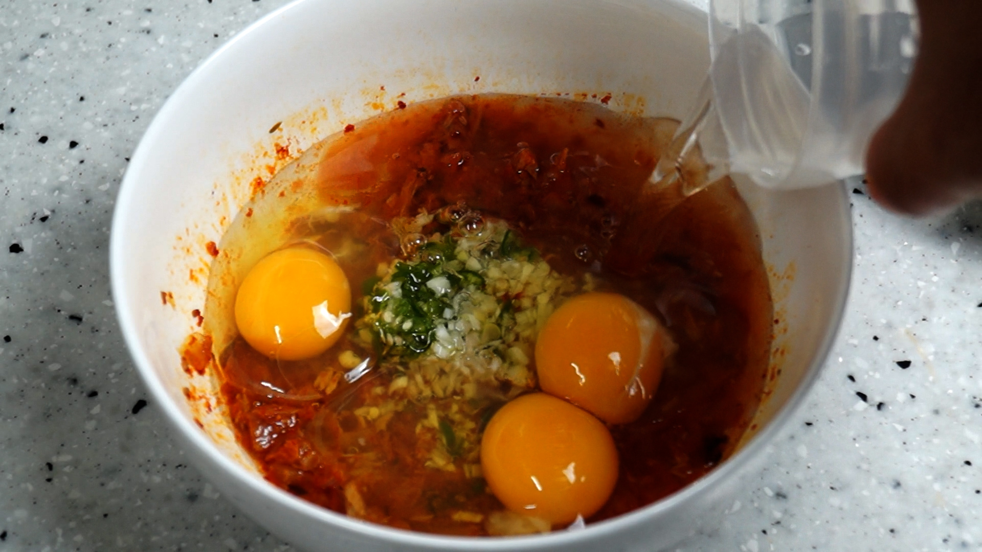 12. 계란 3알을 까서 넣어주세요. 까기전 알무게가 70g 정도 되는 소란에 가까운 계란입니다.