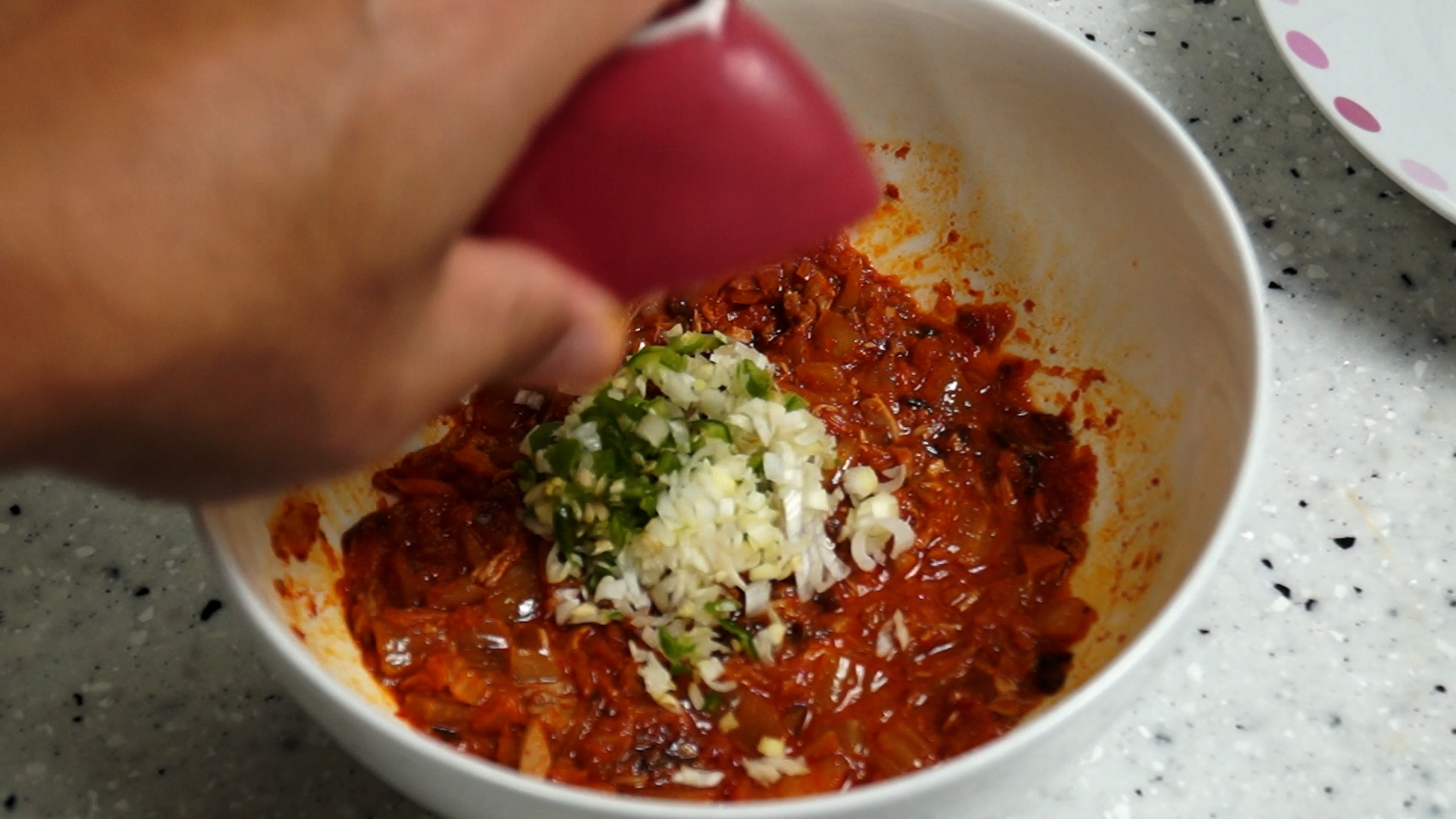 (국물없으면 식초 1/3스푼 3g 고추가루 1/3스푼 2g)