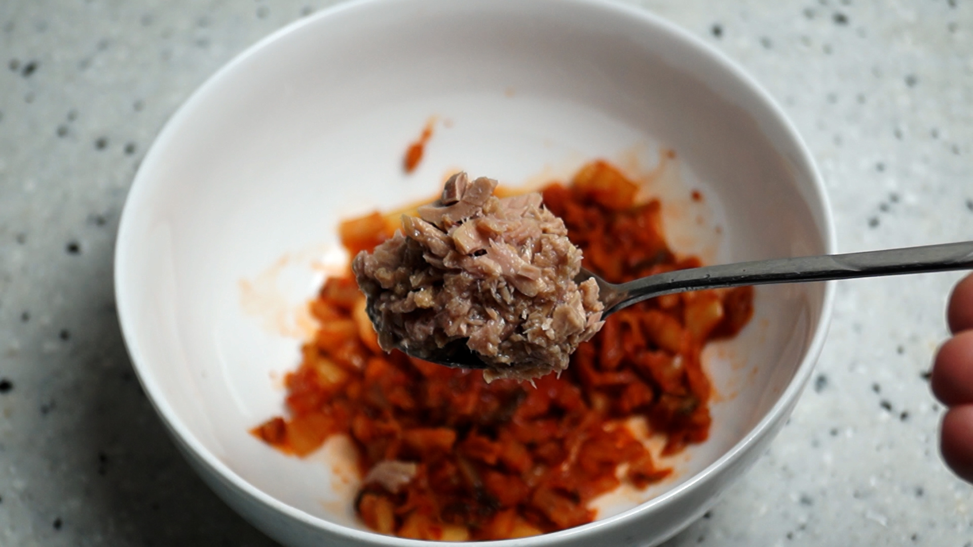 5. 먹다 남은 참치 1큰술 30g 참치 없으면 햄을 잘게 다져서 30g 넣어보세요.