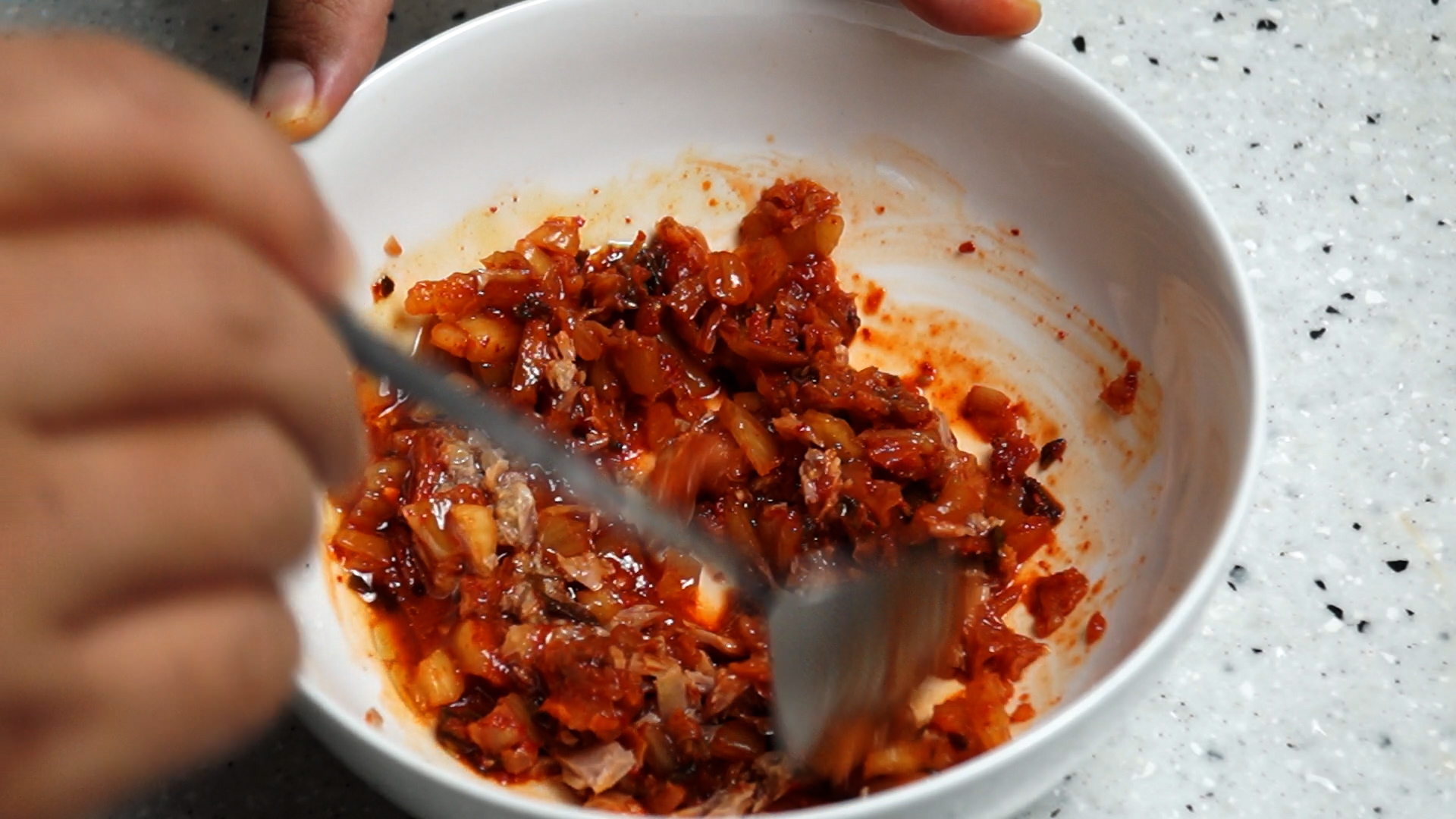 9. 3분 돌린 김치는 그냥 밥에 비벼먹어도 맛있는 상태가 될거에요~ 배고파서 못 참겠으면 이대로 밥비벼드세요