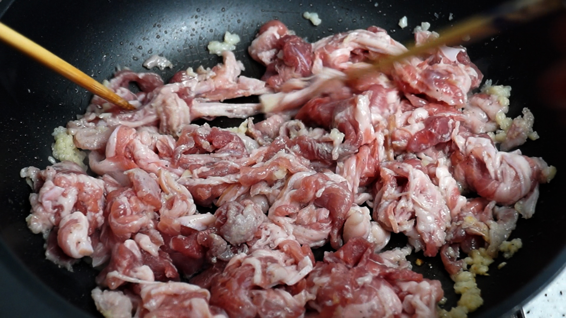 9. 불을 강불로 올리고 밑간한 고기를 넣어주세요.