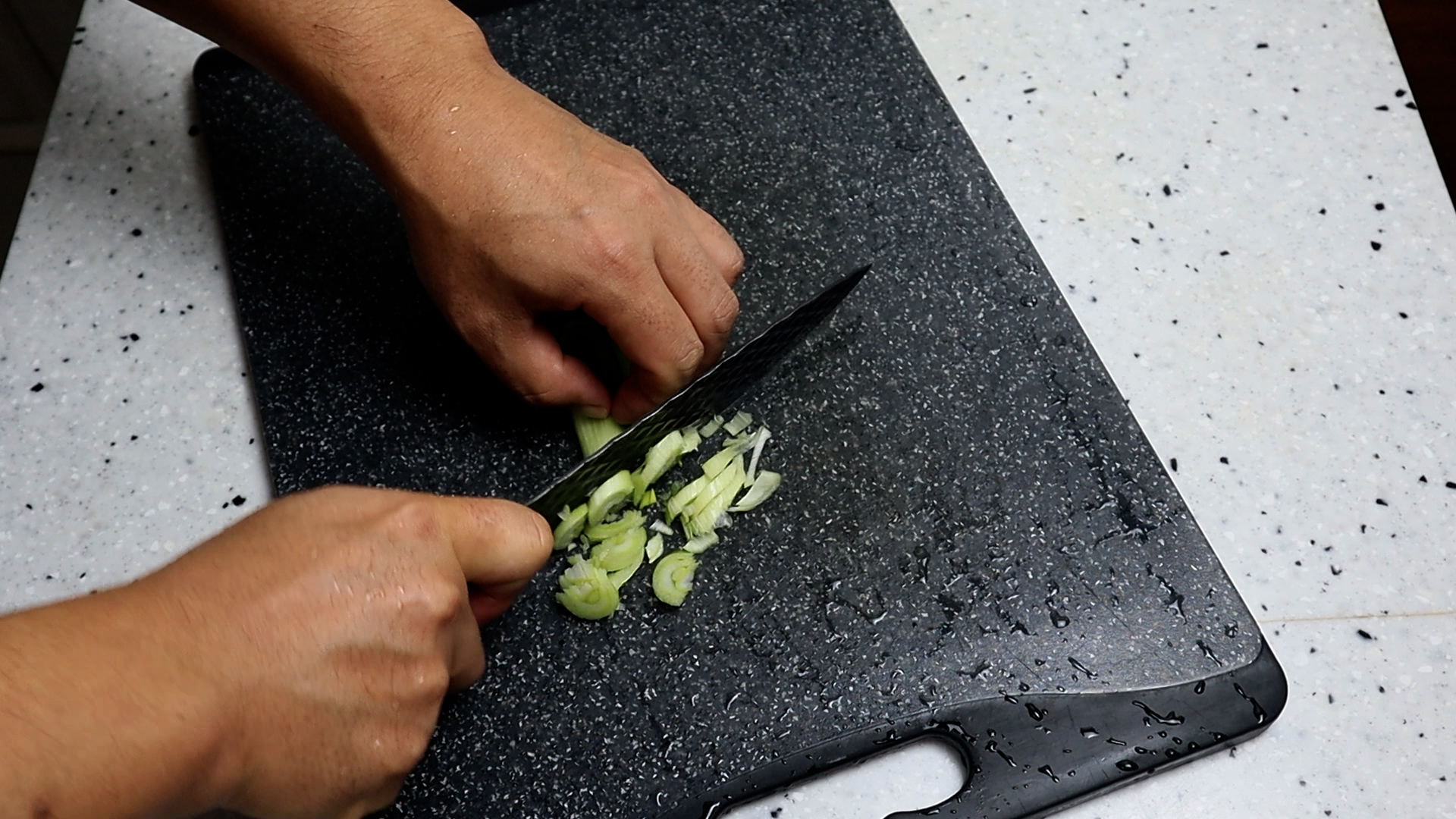 7. 대파는 흰대위주로 사용해주시고 너무 큰거는 반으로 가른 다음에 잘게잘게 잘라주세요.