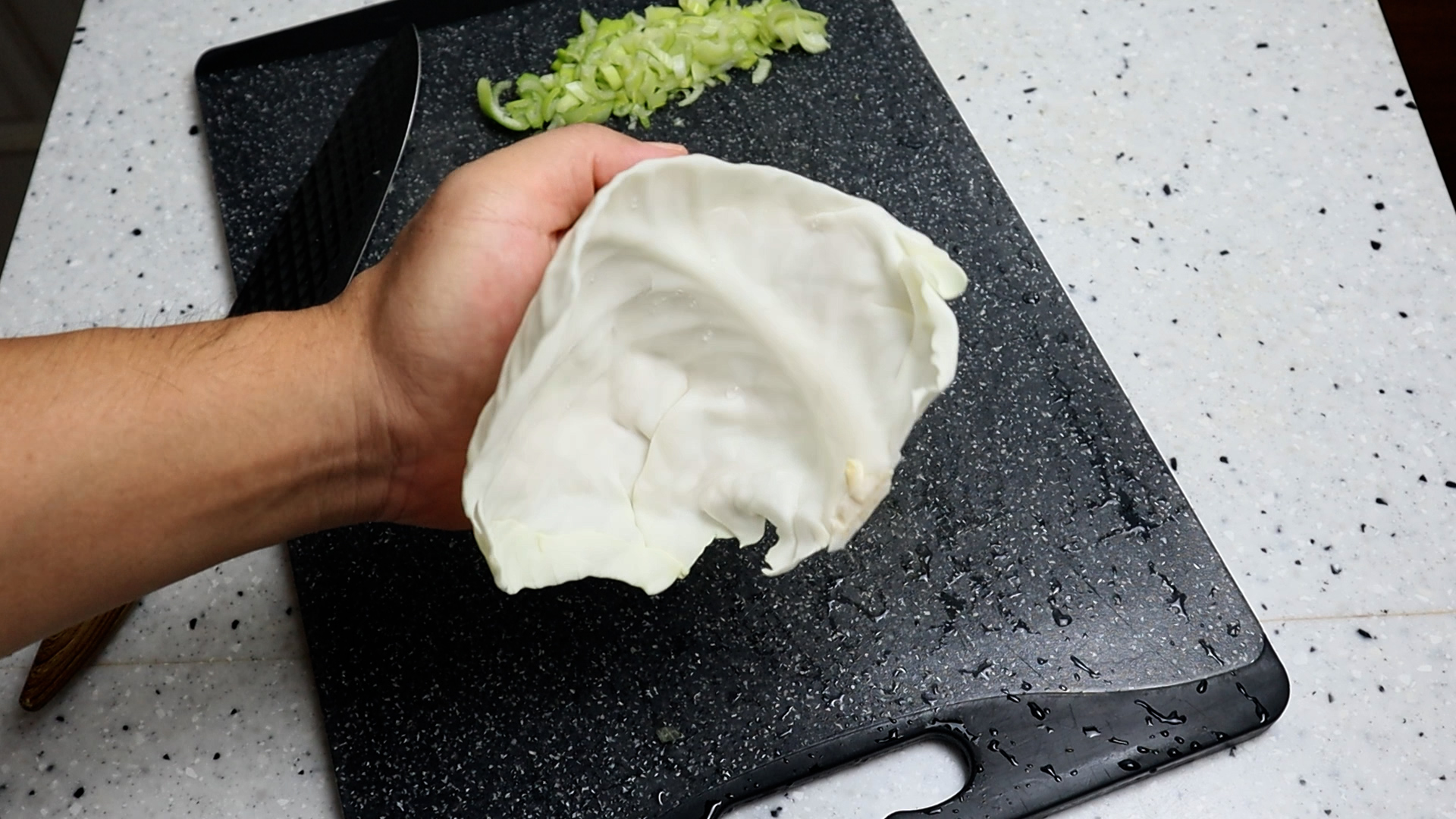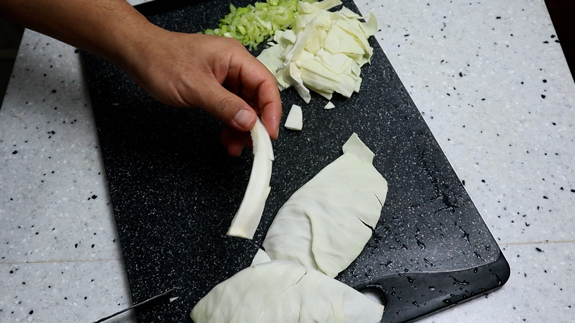 11. 양배추의 이런 두꺼운 대 부분은 그냥 쓰면 식감이 별로고 버릴려면 아까우니 꾹 눌러서 숨을 살짝 죽인 다음에