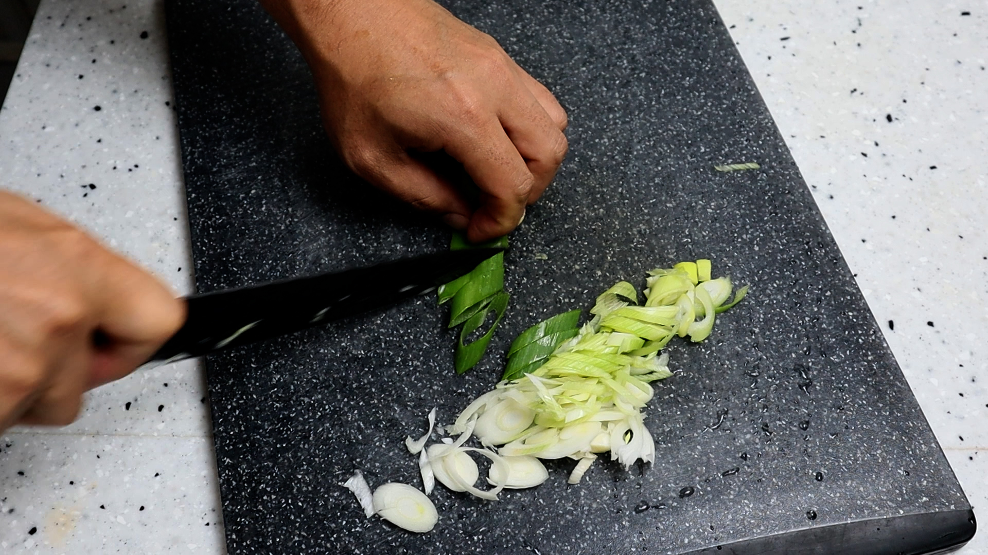 1. 대파는 대충 어슷어슷 썰어주세요. 무게가 애매하시면 주먹으로 가볍게 한주먹 쥘 정도로 어슷썰어 준비하시면 됩니다.