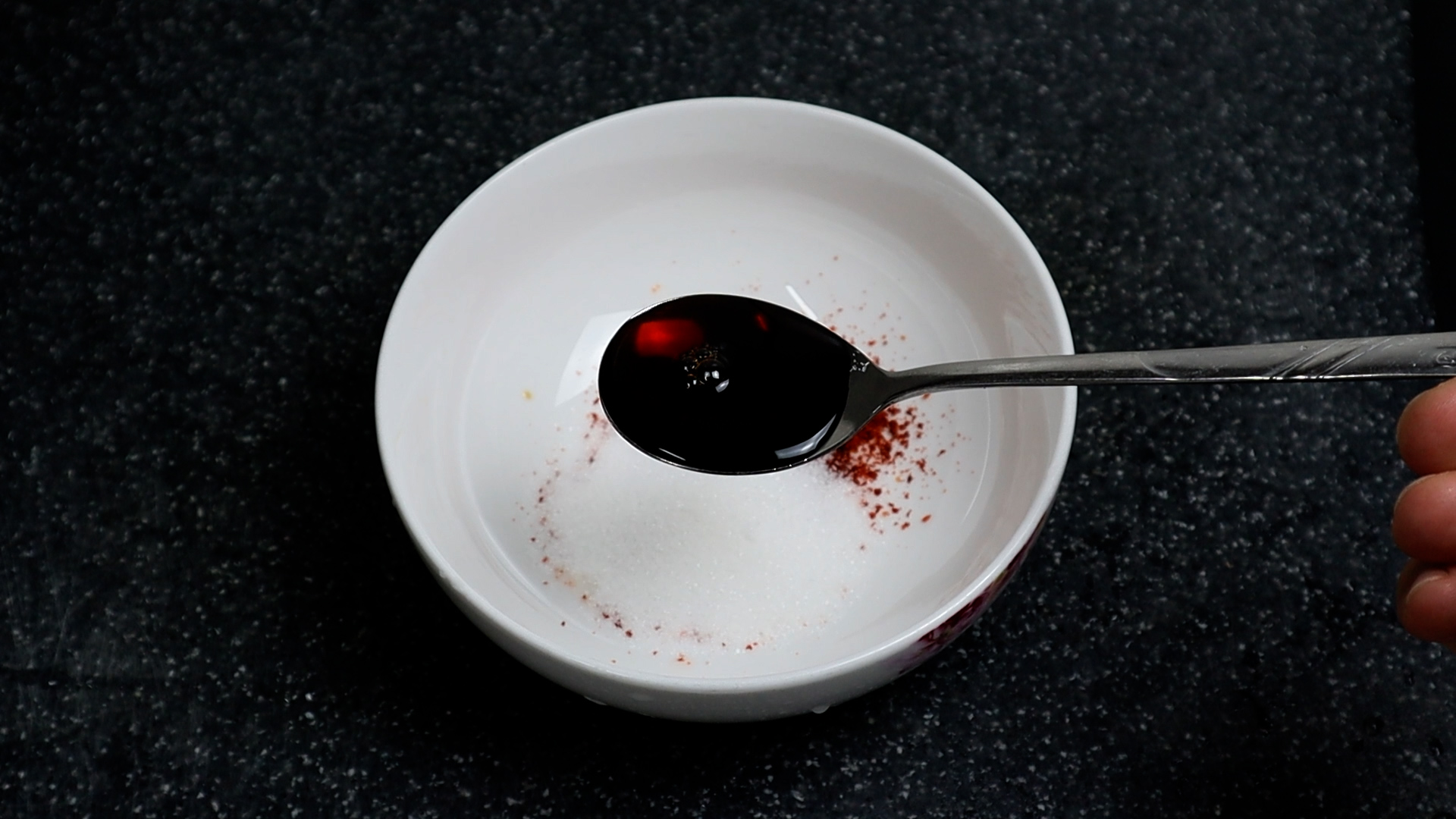 15. 너무 굵지 않은 고춧가루 1스푼은 지금 이 타이밍에 넣어주세요! 양념속에 들어 수분먹은 고춧가루와 마지막에 마른 상태로 넣어서 기름에 볶아지는 고춧가루는 맛과 향이 확연히 다르며 깊고 진한맛을 살려주더라고요