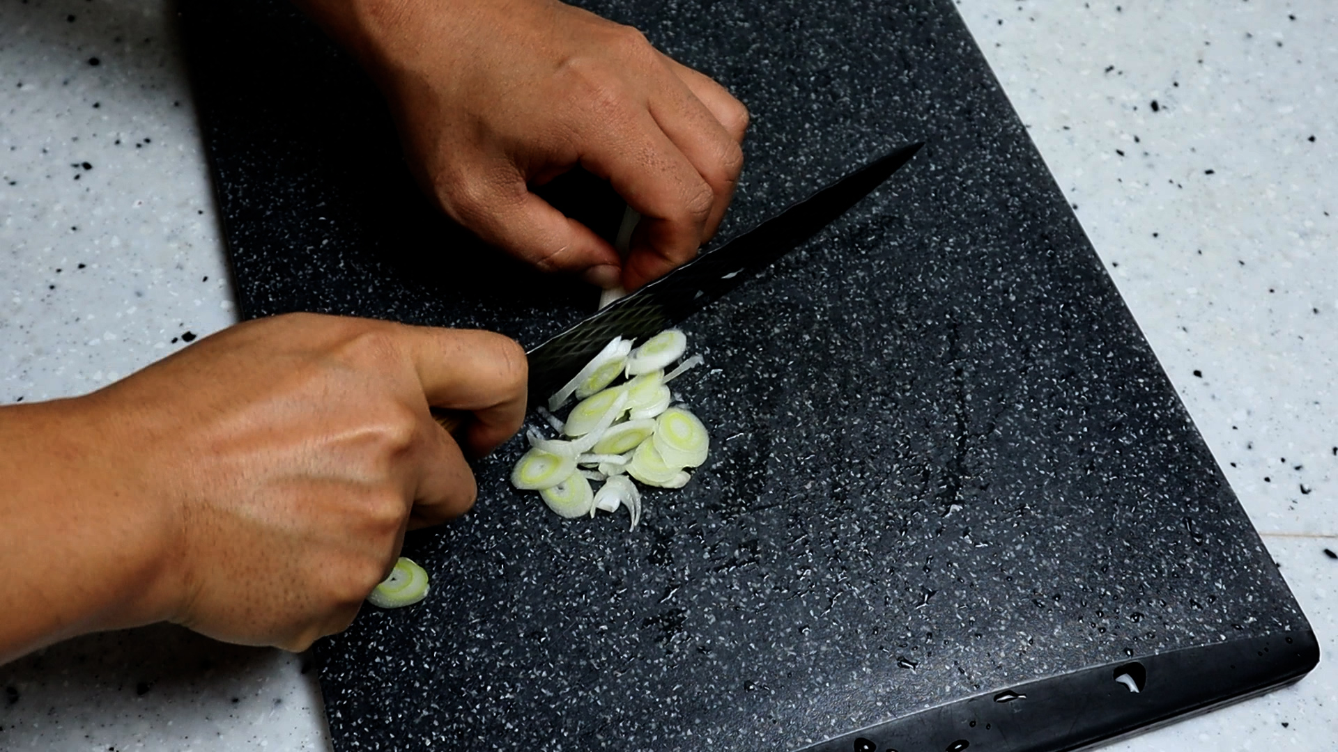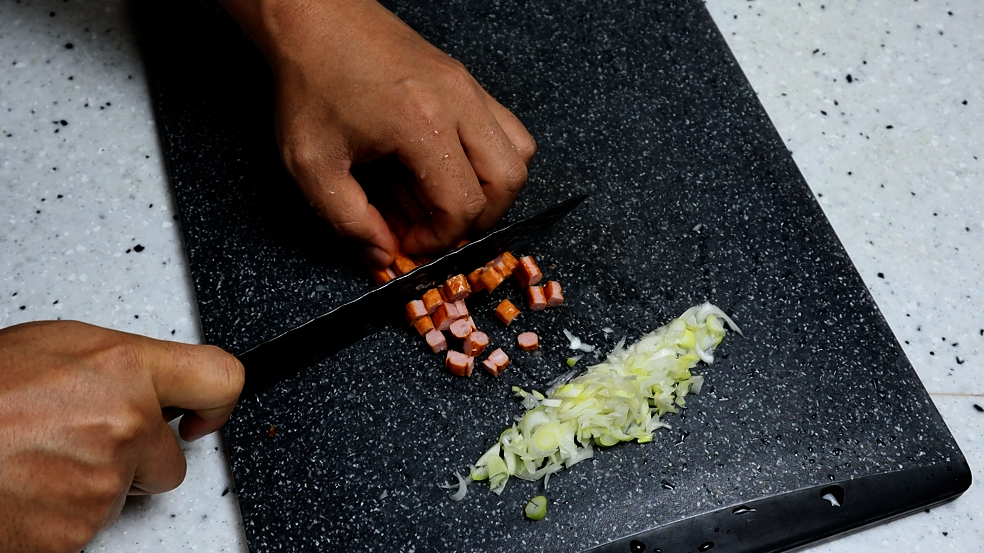 1. 대파 2큰술 분량을 잘게잘게 썰어준 다음 몇번만 다져주세요.