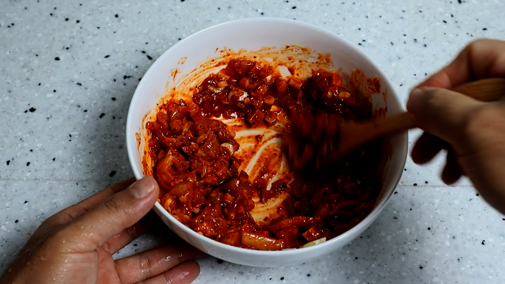 4. 김치를 볼에 넣고 김치양념에 표기된 양념들을 전부 넣어주세요.