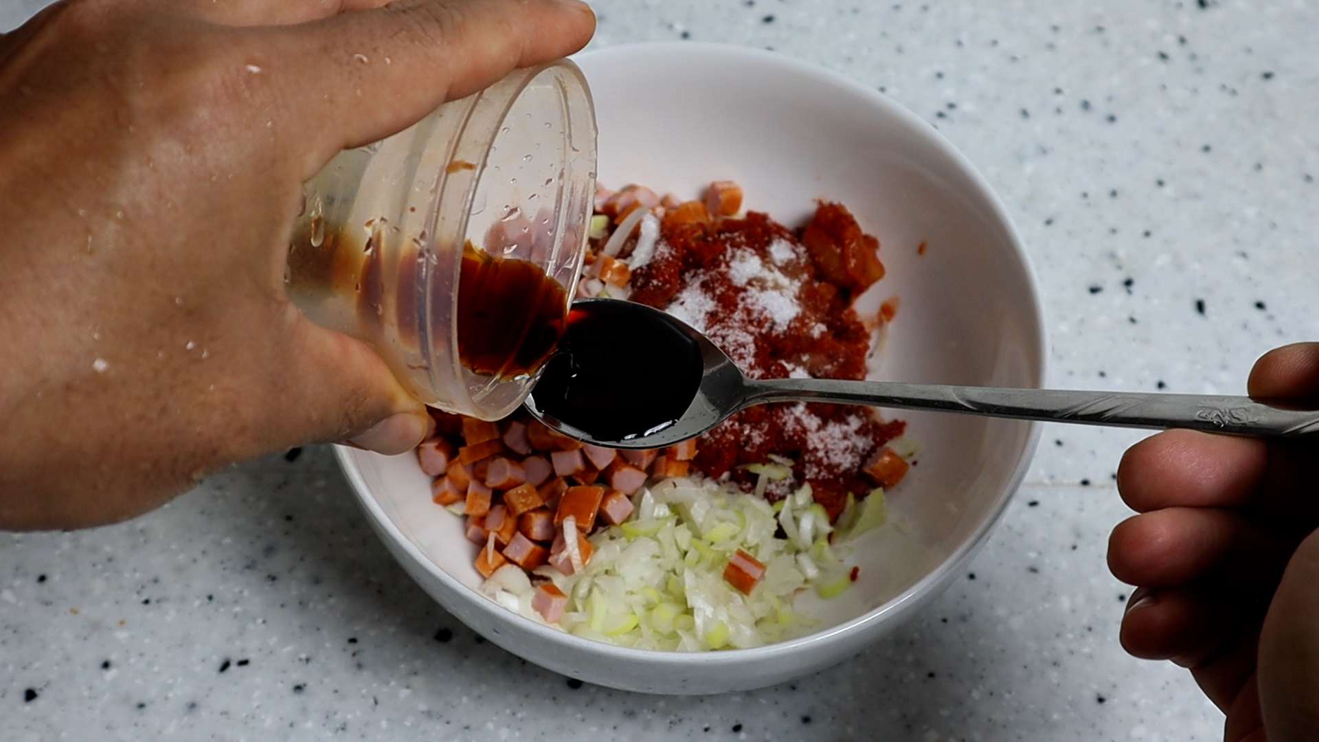 9. 그외 표기된 양념란에 표기된 재료를 빠짐없이 분량껏 전부 넣고 골고루 풀어지게 섞어주세요.