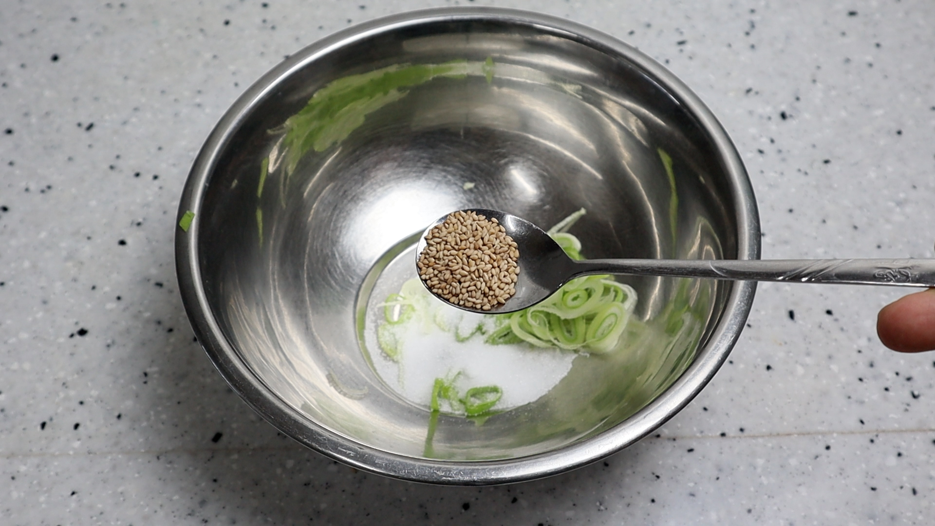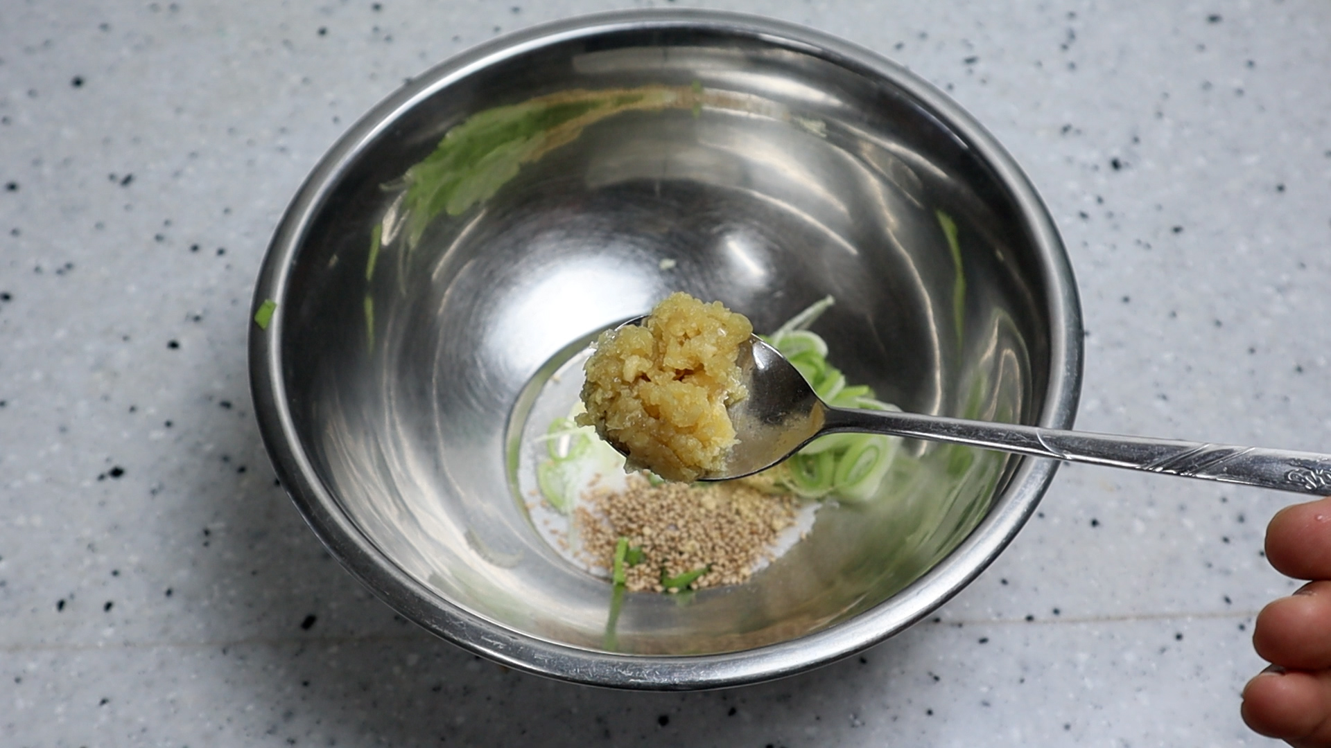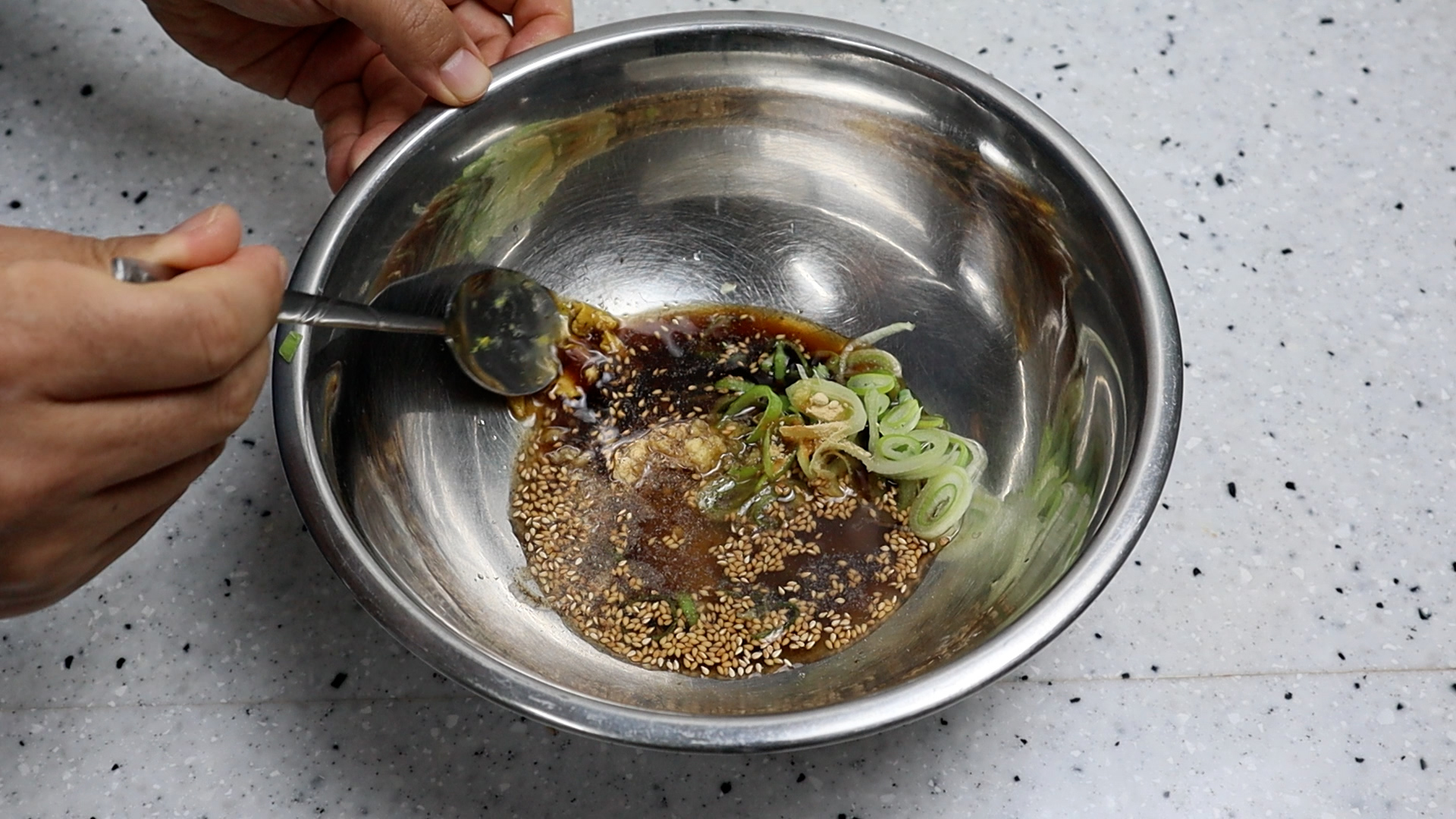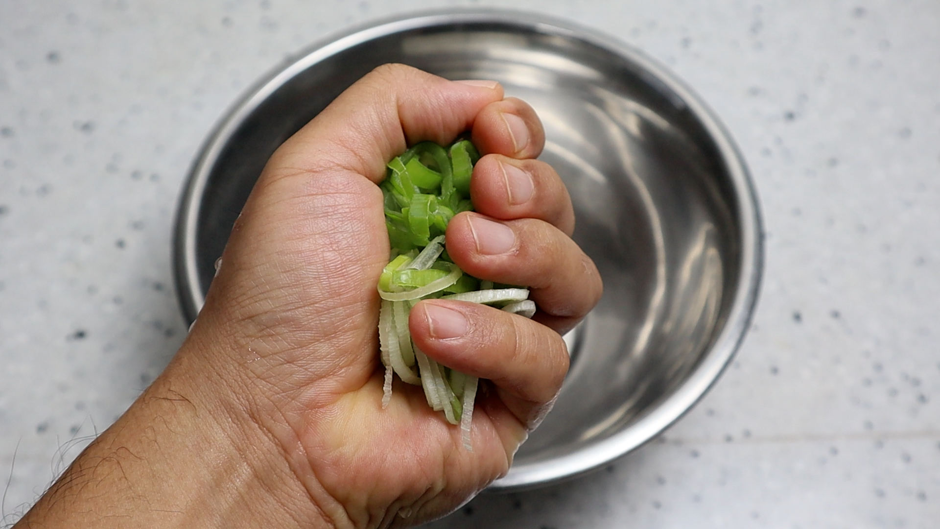 1. 양념장에 적힌 재료들은 분량껏 전부 넣어주세요. 잘게 자른 대파 20g 양이 애매하시면 이렇게 주먹으로 가볍게 1주먹 넣어주시면 됩니다.