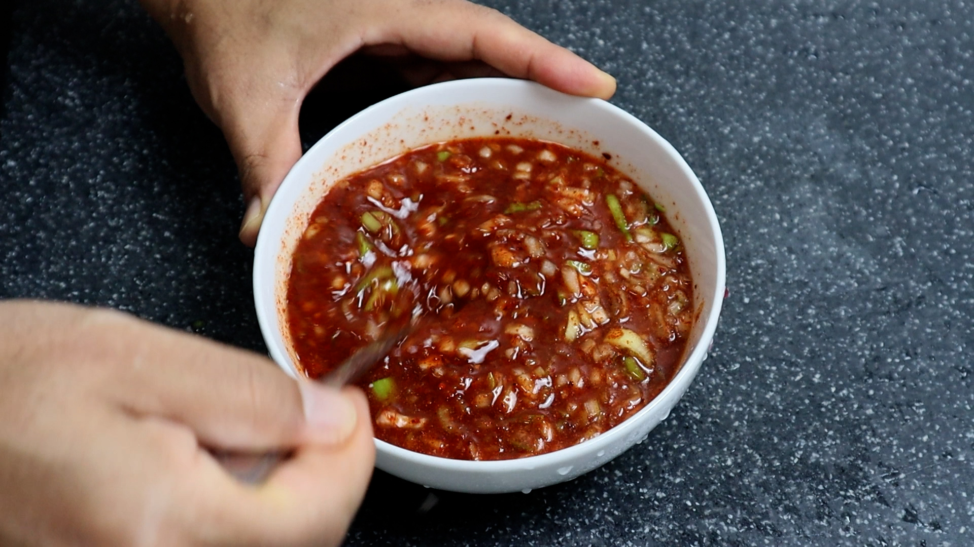 6. 양념장에 적힌 재료를 분량껏 전부 그릇에 넣어주세요. 고춧가루는 김치담는 용도같이 너무 크거나 장만들때 쓰는 미분 말고 중간입자 고춧가루를 사용해주세요.