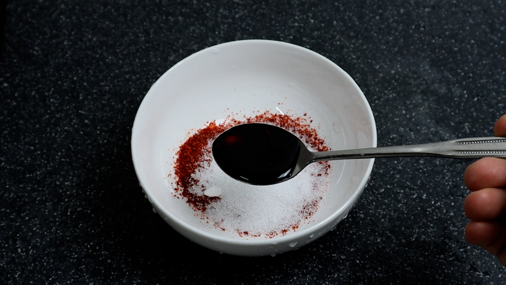 7. 설탕은 깍아서 1스푼 넣어주세요. 고봉으로 쌓으면 너무 많이 들어 갈수 있으니 깍아서 넣은 다음 나중에 모자라면 설탕을 추가하세요.