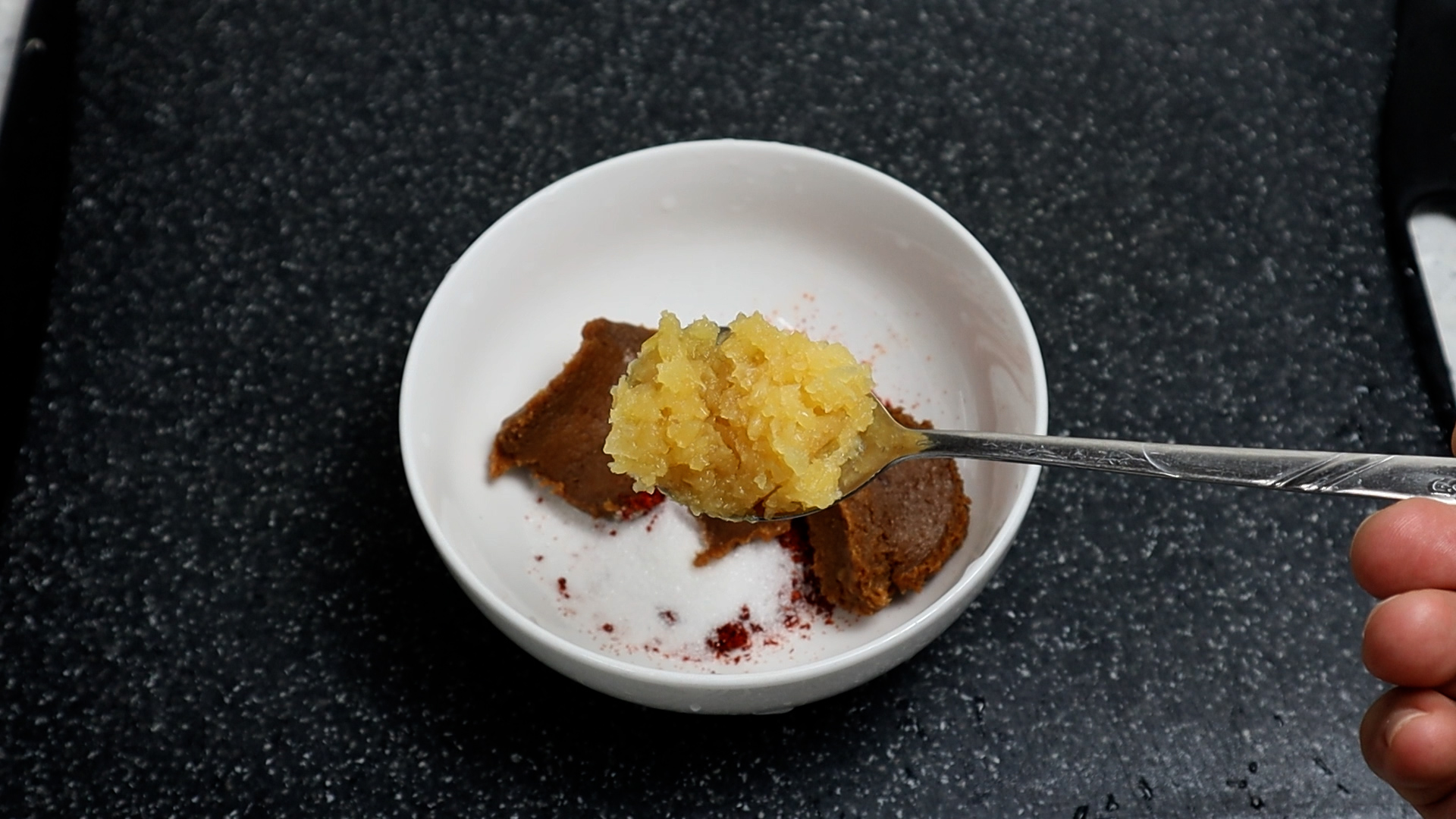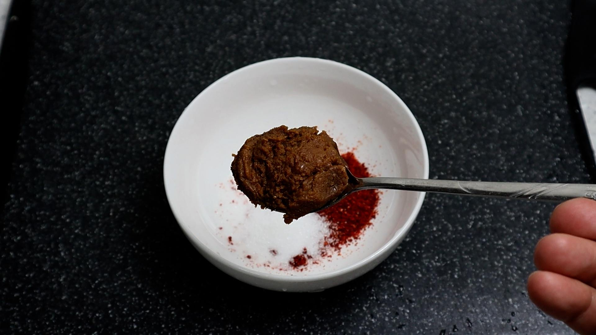 3. 찌개 끓일때 사용하는 재래된장을 이정도를 1스푼에 이정도 퍼주세요. 된장은 집된장 보다는 시판된장을 쓰시는게 더 맛있습니다.