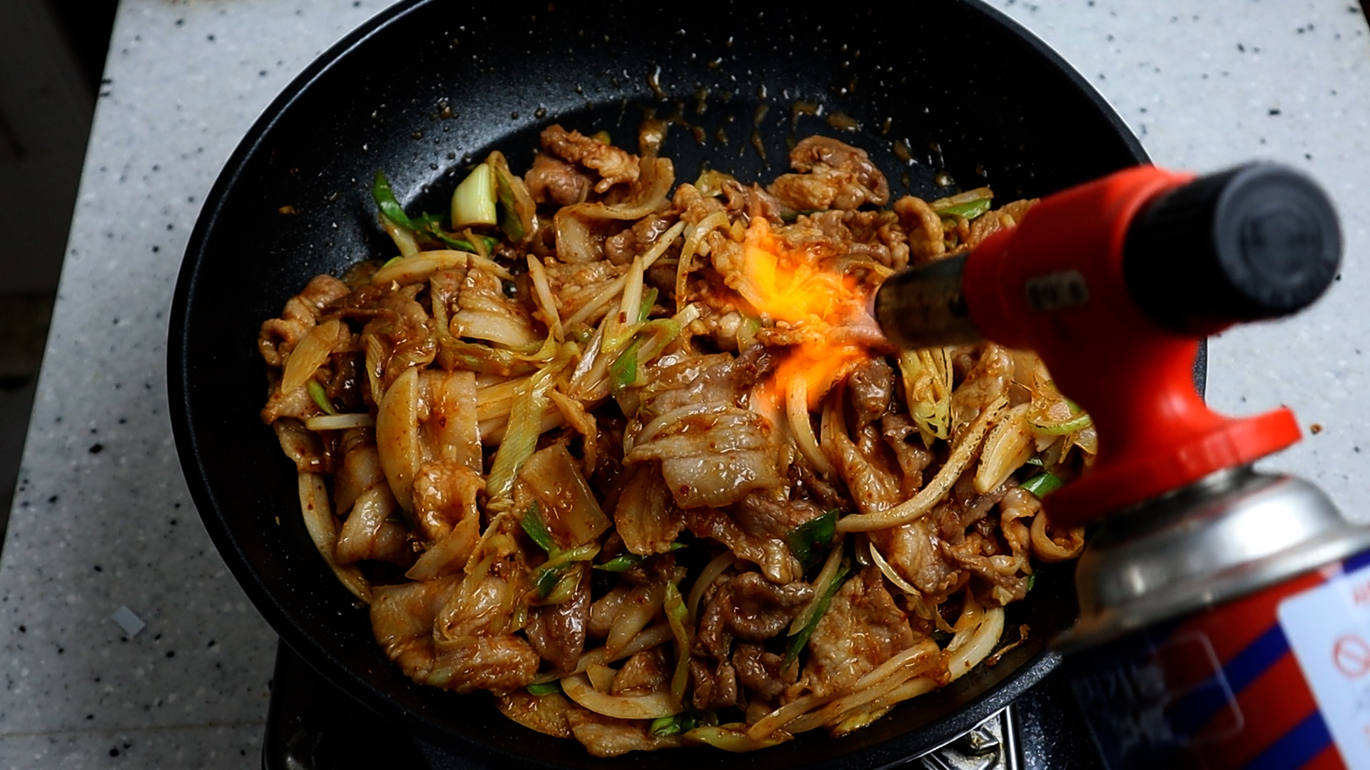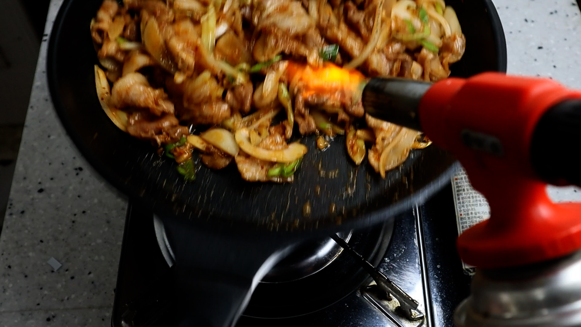 16. 토치질로 직화를 살짝 해주면 좀더 밖에서 사먹는 맛을 낼수가 있답니다~