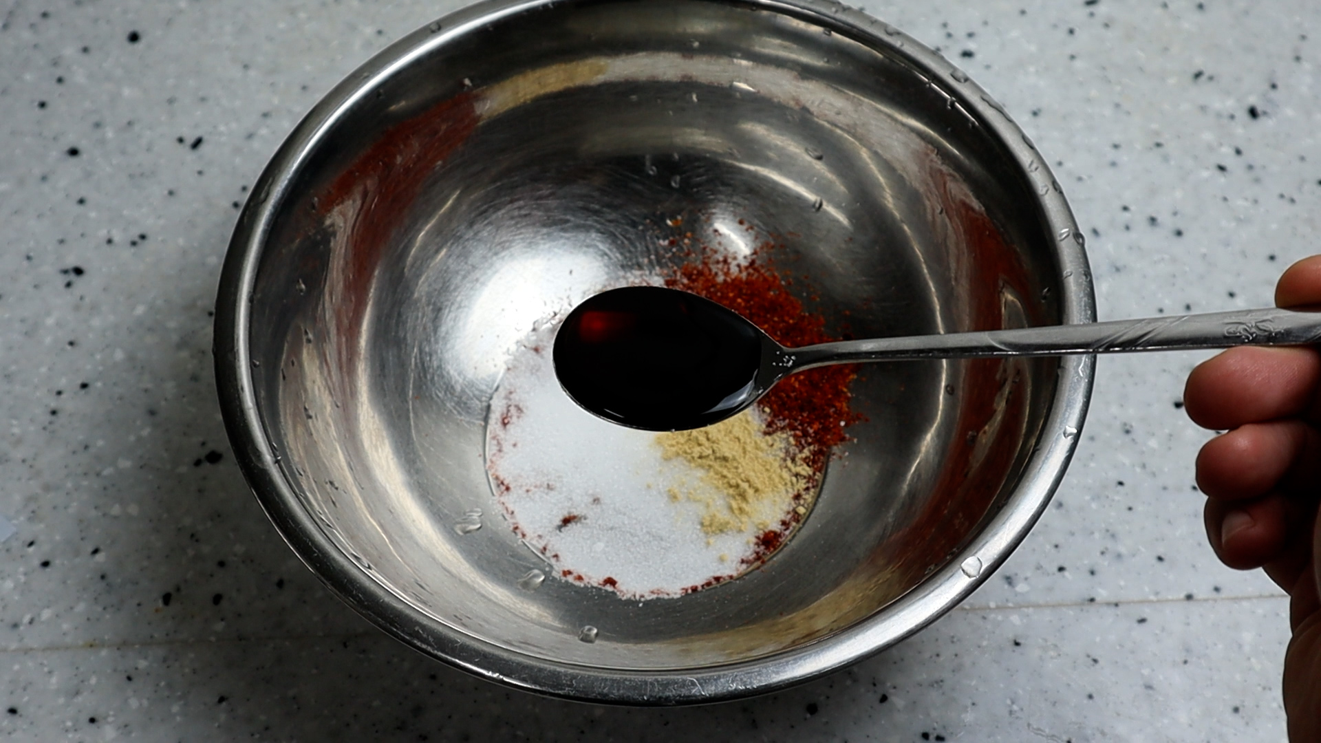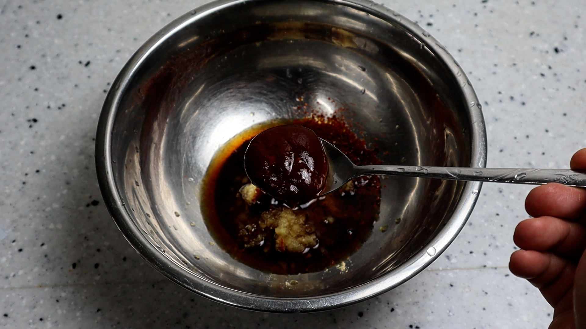 3. 양념장에 적힌 재료를 전부 볼에 넣어주세요. 고춧가루는 너무 곱거나 굵은거 말고 중간입자 고추가루를 사용하시는게 제일 잘 어울리더라고요~