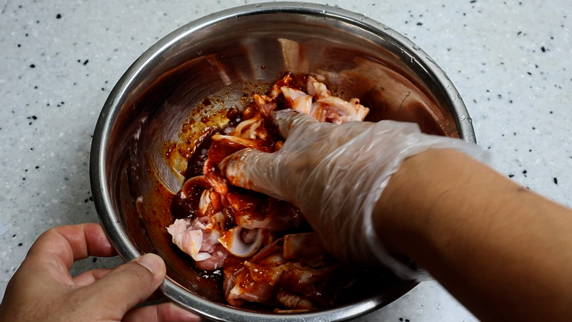 13. 야채를 넣고 가볍게 한번만 섞은 다음 냉장실에서 1시간 정도 재워주세요.